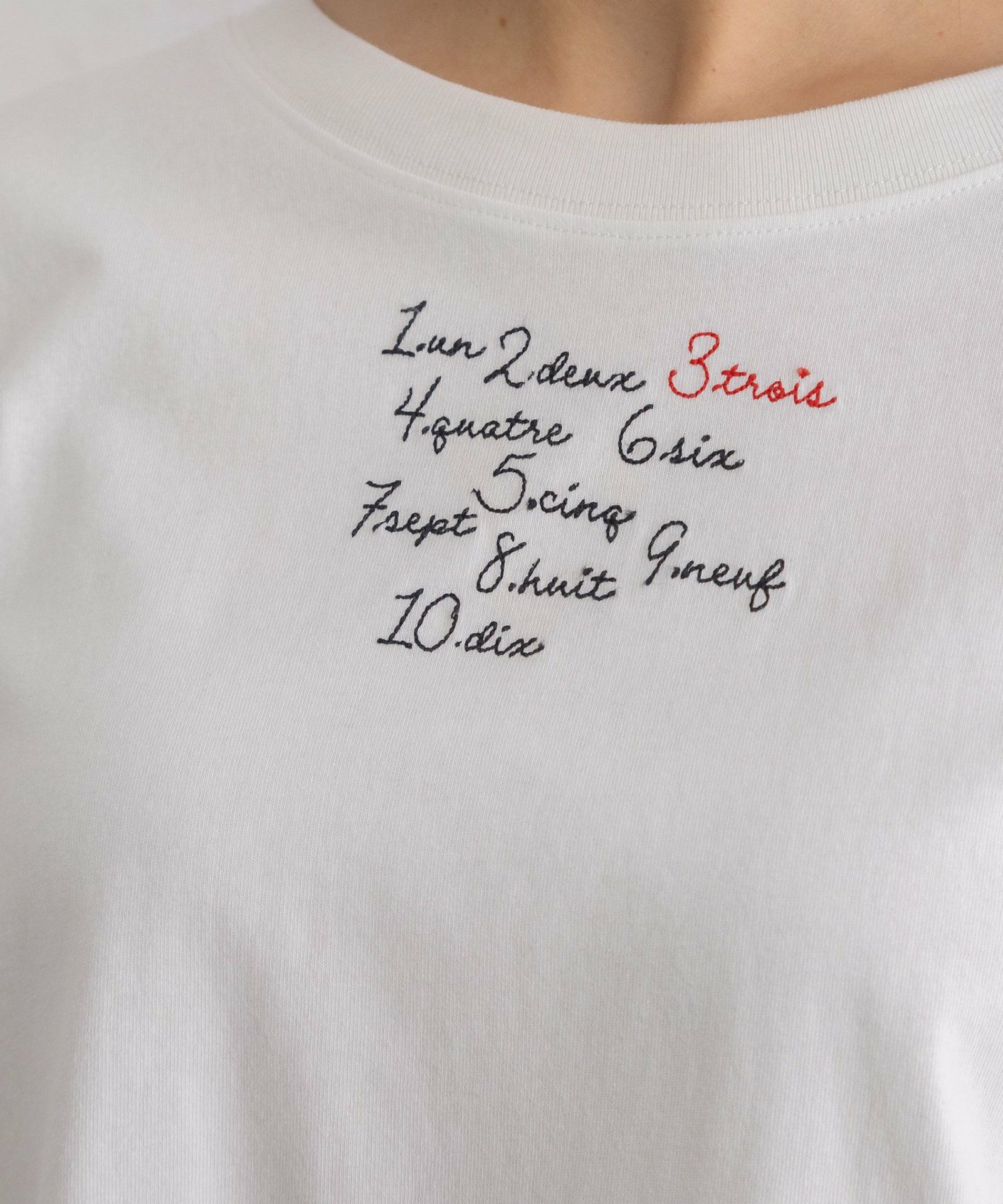 ベーシックで使いやすいシルエットに、スリットディテールが新鮮なロンT。スリット部分は結んで着用することもでき、コーディネートのポイントになります。素朴な風合いの空紡糸天竺を使用し、程よくカジュアルな印象に仕上げました。袖口はリブでまとめ、インナーとしても重ねやすく、袖を捲し上げやすい仕様です。フロントには手描きタッチの文字をザクザクとしたステッチで刺繍し、ジャンスカや羽織を合わせた時にポイントになるようにしています。