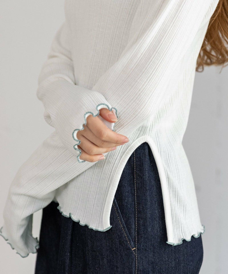 首元をすっきりと見せる、緩やかなスクエアネックが印象的なデザイン。柔らかく伸縮性のある、着心地の良いリブ素材を使用しました。すっきりとしたシルエットながら程よいゆとりがあり、ボディラインを拾いにくいのも嬉しいポイント。左脇にはさりげなくスリットを施し、動きやすさと抜け感をプラス。同素材のスカーフは単品使いも可能で、オン・オフ問わず活躍するワードローブの心強い一枚です。