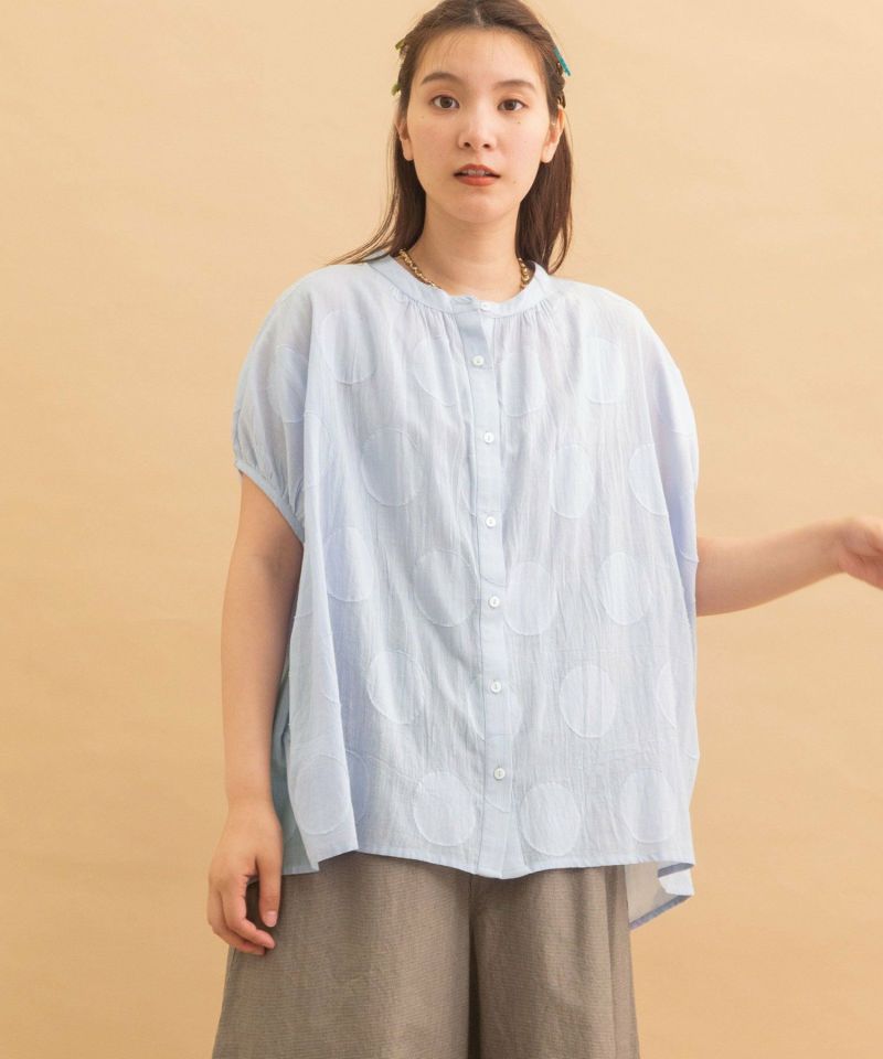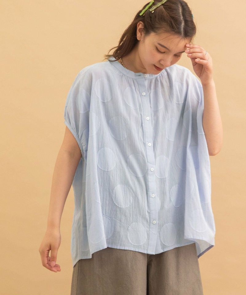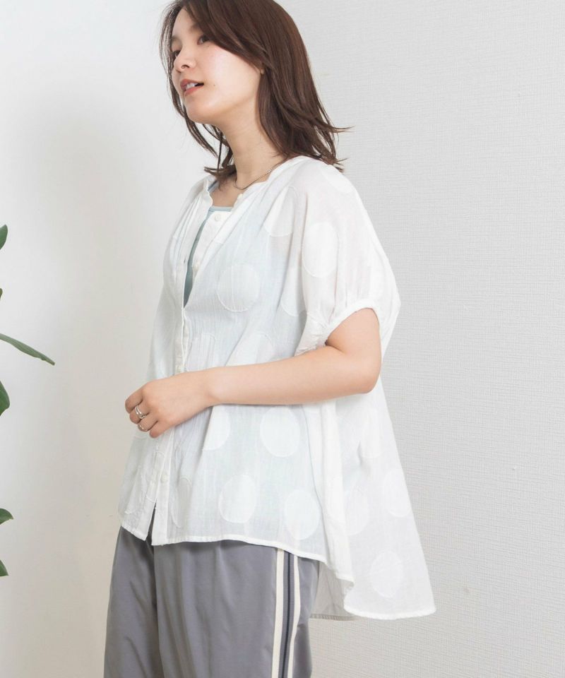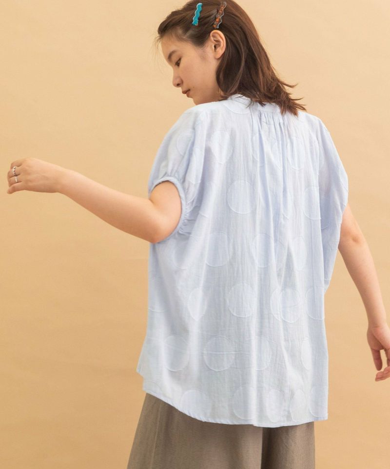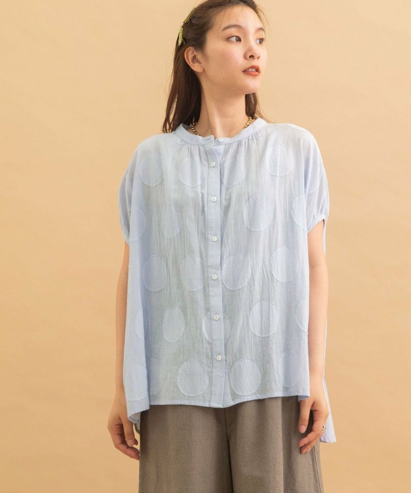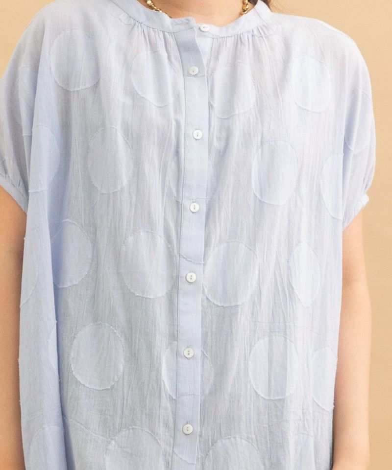 ・おなじみのサークルカットドビーのジャガード生地を今年は大きなドットでインド生産しました。