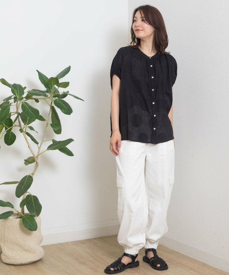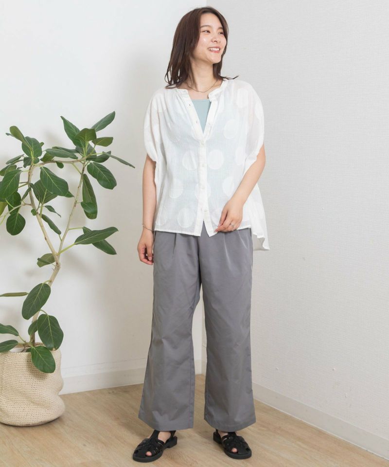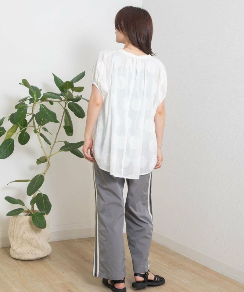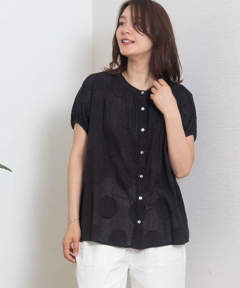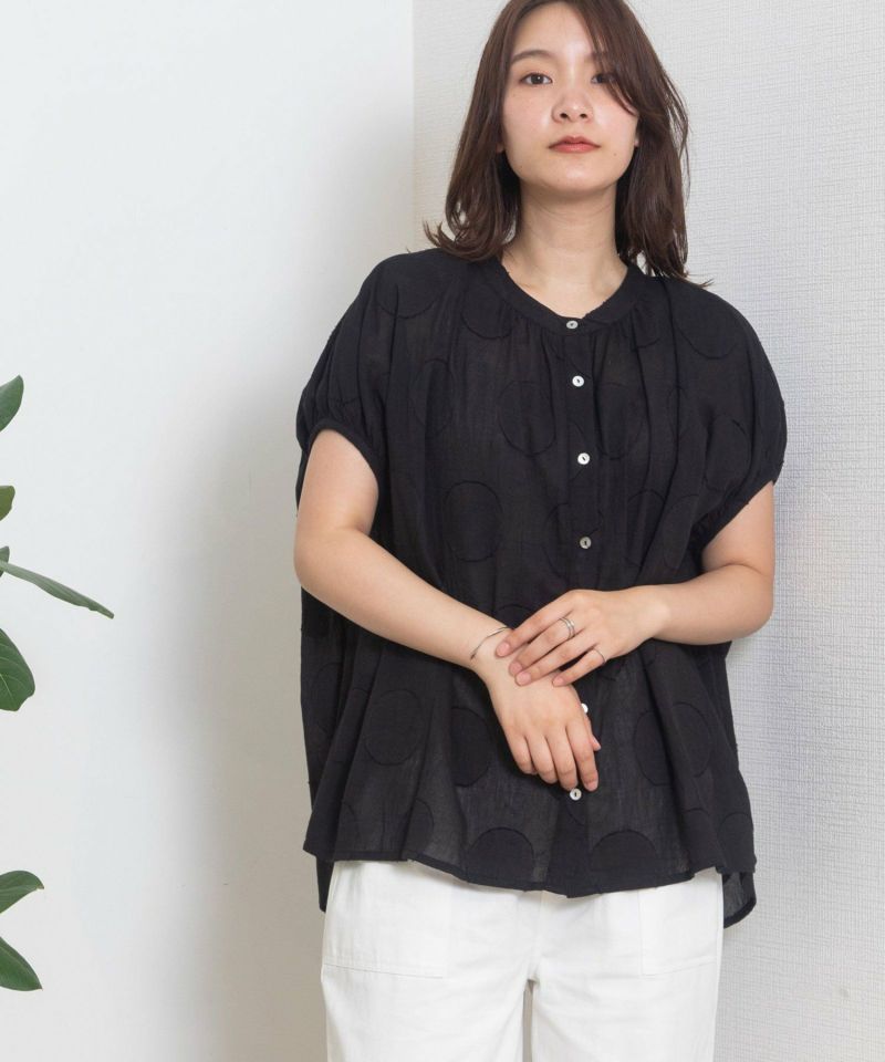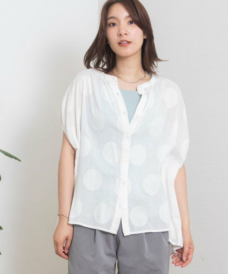 ・おなじみのサークルカットドビーのジャガード生地を今年は大きなドットでインド生産しました。