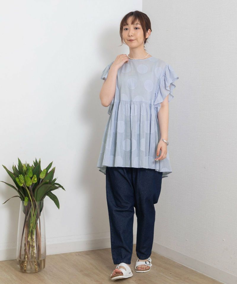 大きなドットの涼しいブラウス