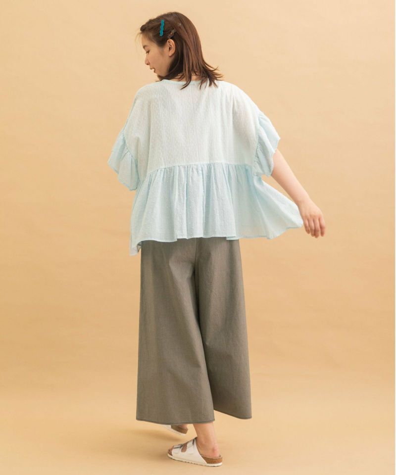 ・たっぷりとした身巾とギャザースリーブでふんわりとしたシルエットを楽しめます。