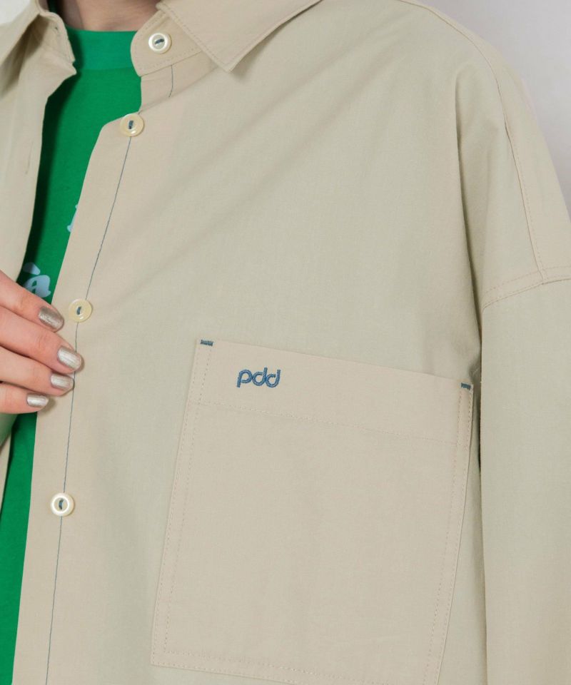 ゆったりとしたメンズライクなシルエットが魅力的なオーバーサイズシャツ。無地は少しハリ感のある素材でカジュアルすぎない印象に。コットン素材なので長い間着回せます。胸元のポケットにはpdd(プードゥドゥ)刺繍入り。バックスタイルの肩にはThis is my favorite shirtの手書きの文字刺繍が施されています。