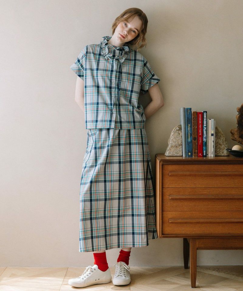 同素材の2511147822 マドラスチェックフレアスカートとのセットアップコーディネートもおすすめです。