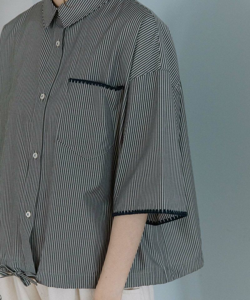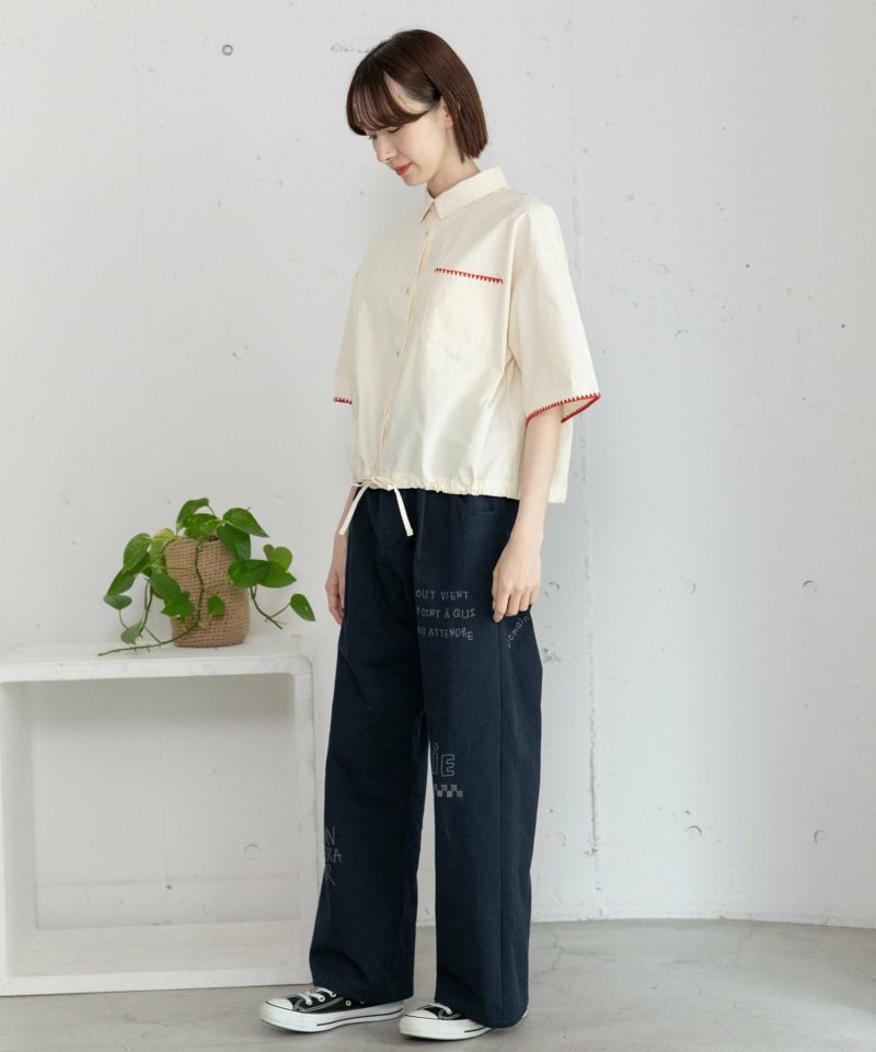 トレンドスタイルに欠かせないクロップド丈のシャツ。袖口とポケット口のはまぐり刺繍がポイントです。レギュラーカラーできちんと感があり、こなれた印象を演出します。羽織やすいゆったりとしたシルエットに、肘にかかる袖丈です。