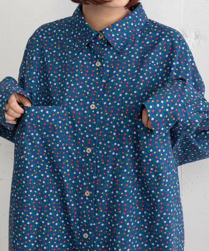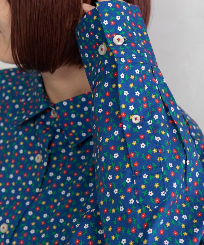 はっきりとした色味の花柄がレトロで懐かしい雰囲気のプリントシャツ。胸ポケットやエッジを効かせたショルダーヨークなど、ウエスタンシャツのディテールを取り入れました。シルエットはゆったりとさせメンズシャツのような雰囲気に仕上げています。素朴なコットンキャンバス素材で長い間着回せます。