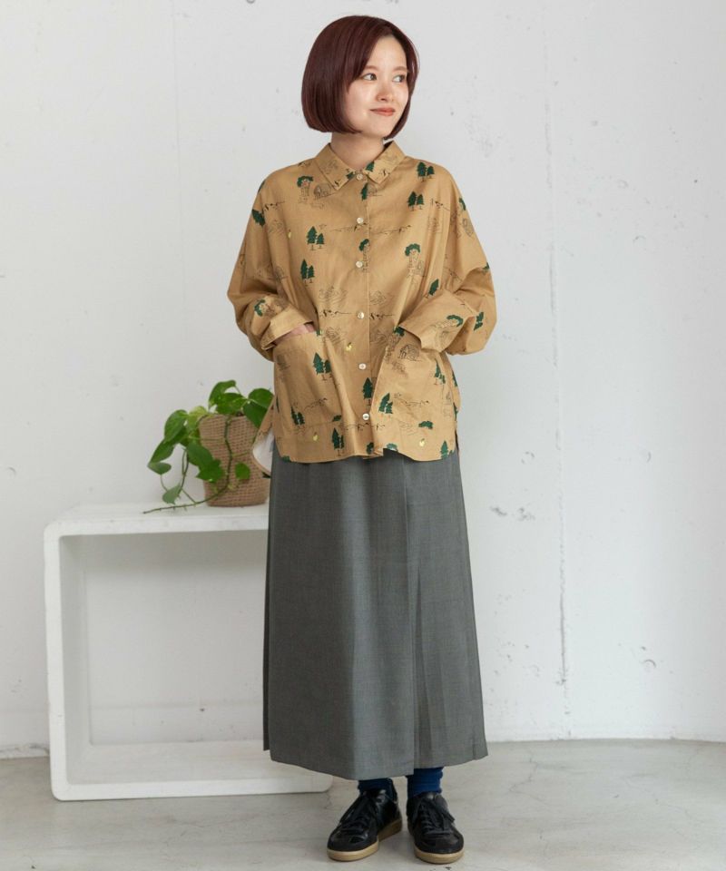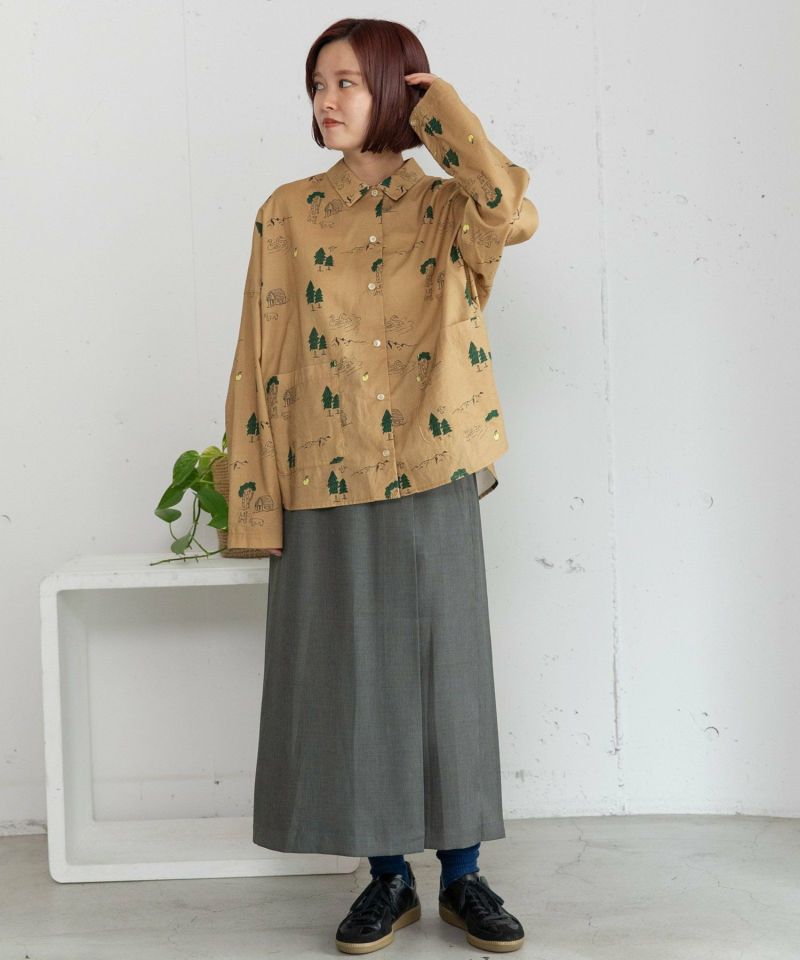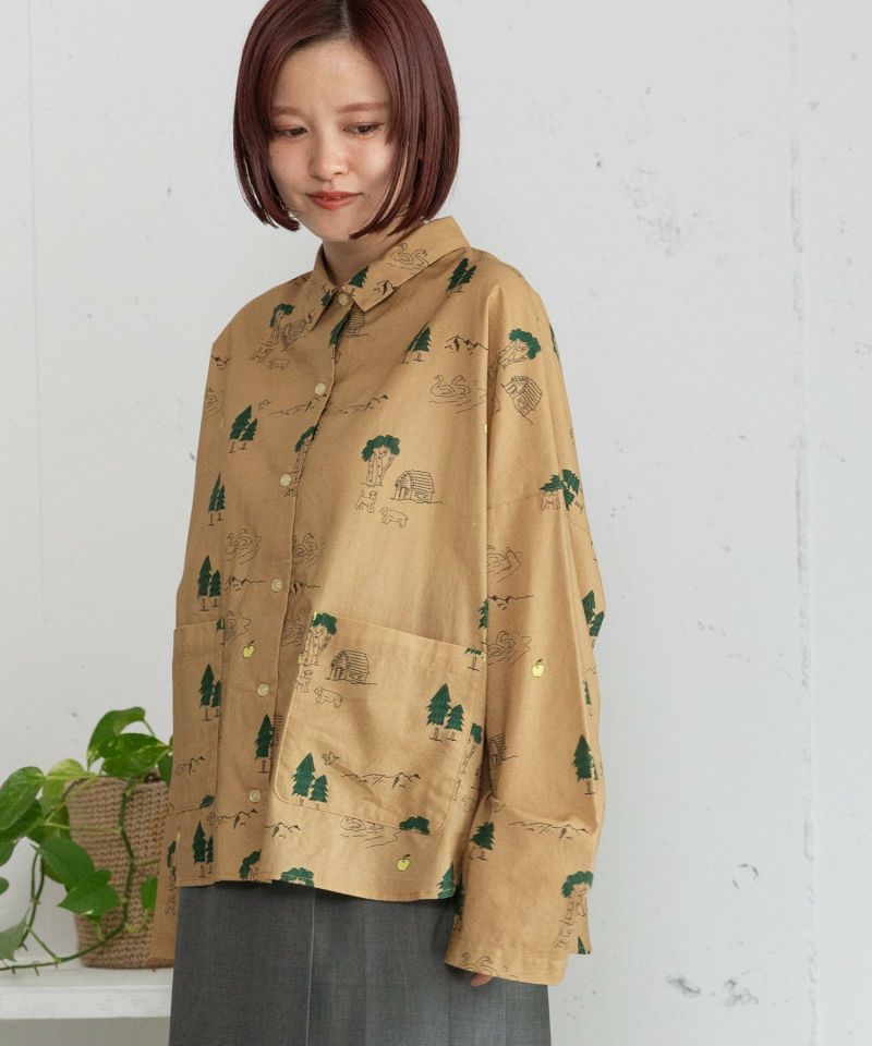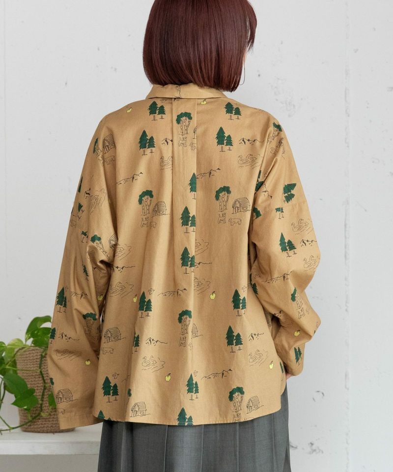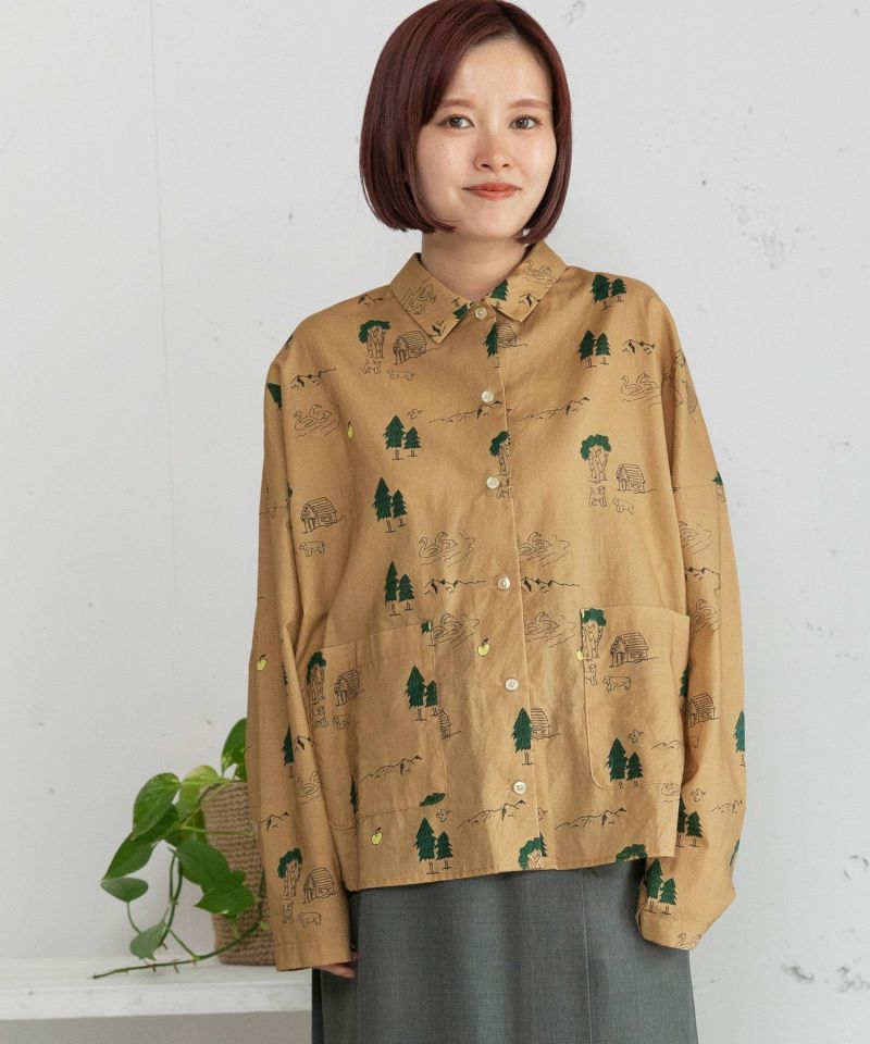 オリジナルのスワンレイク柄をプリントしたポケットシャツ。コットンキャンブリックの素朴な風合いが優しい雰囲気。肩を落としたゆとりのあるサイジングで羽織りとしても使えます。すとんとしたシンプルな袖口で捲りやすく、袖口からインナーをチラ見せさせるのもおすすめです。