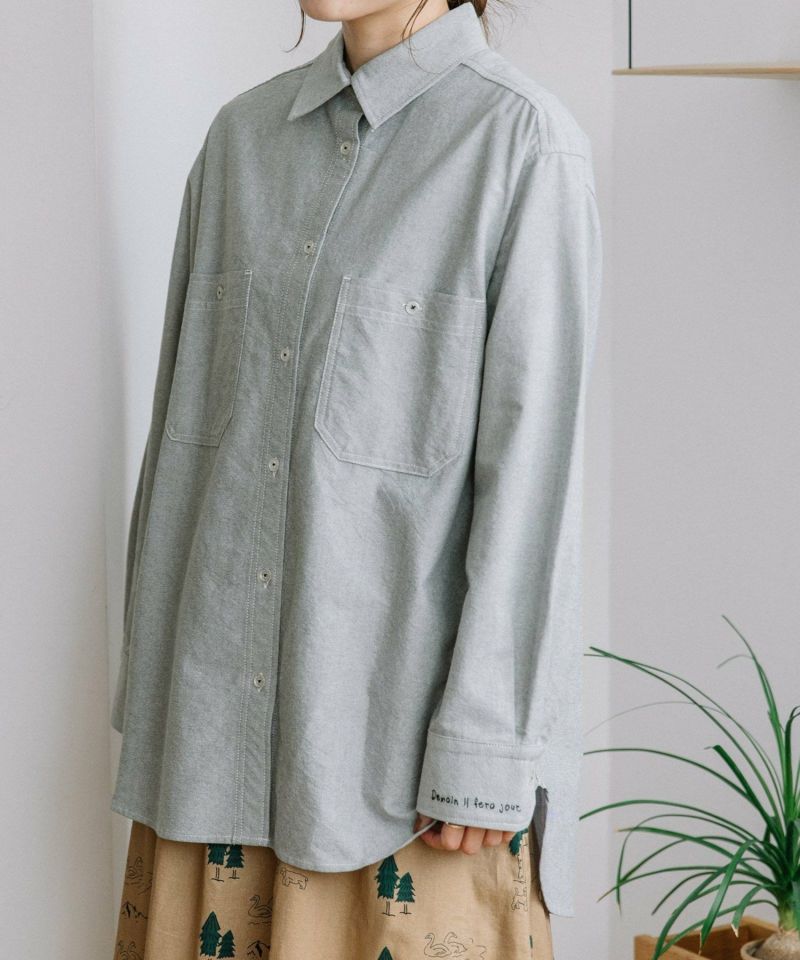 袖口にそっと効かせた、手描きタッチのロゴ刺繍のさりげない遊び心がポイントのオックスシャツ。やわらかなオックス素材を使用したベーシックなシャツです。フロントのダブルポケットがアクセント。ややゆとりのあるシルエットで、羽織としても使いやすい1枚。スタイリングの主役になるレッド、着回しやすいブルー・ブラックの3色展開。