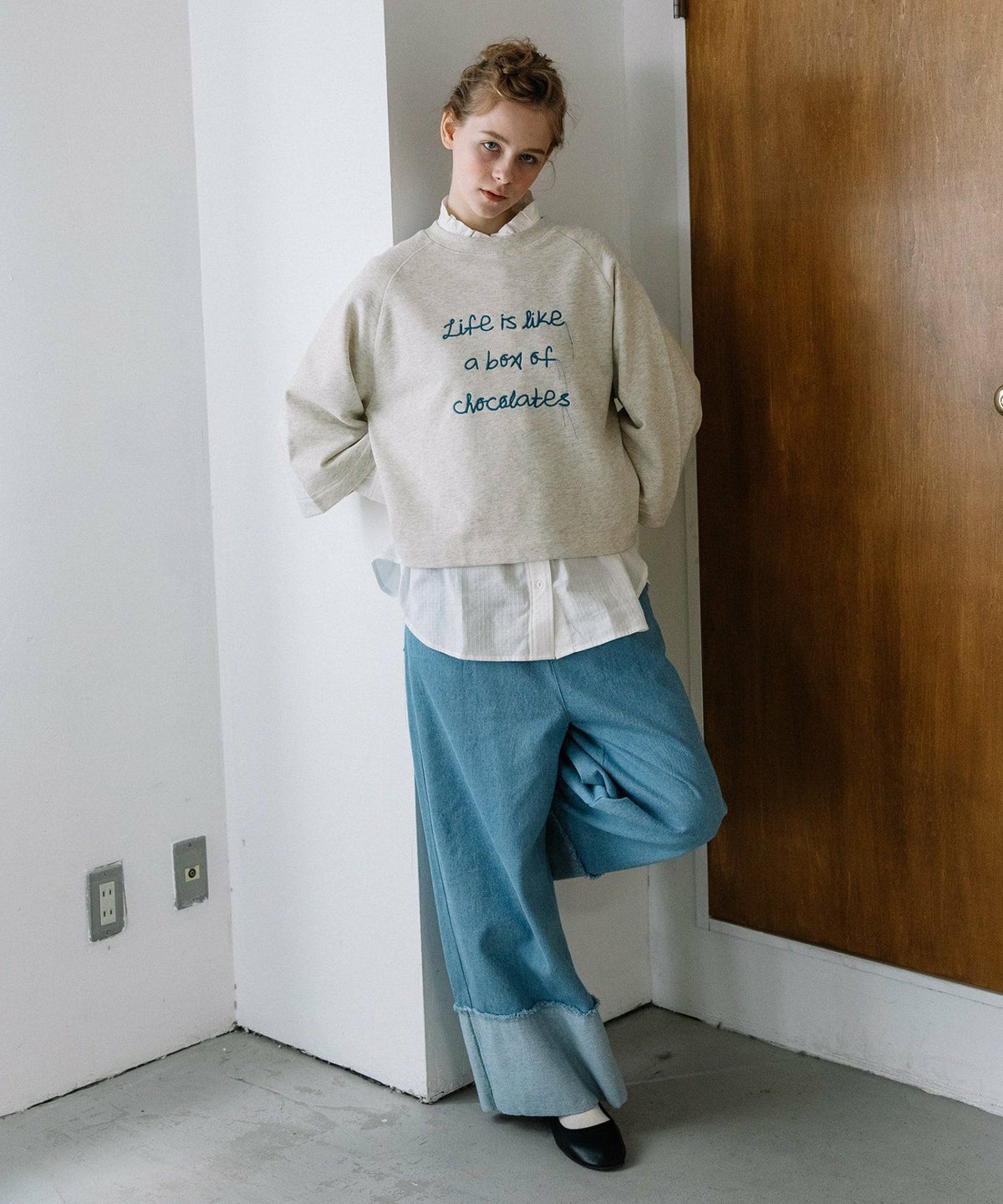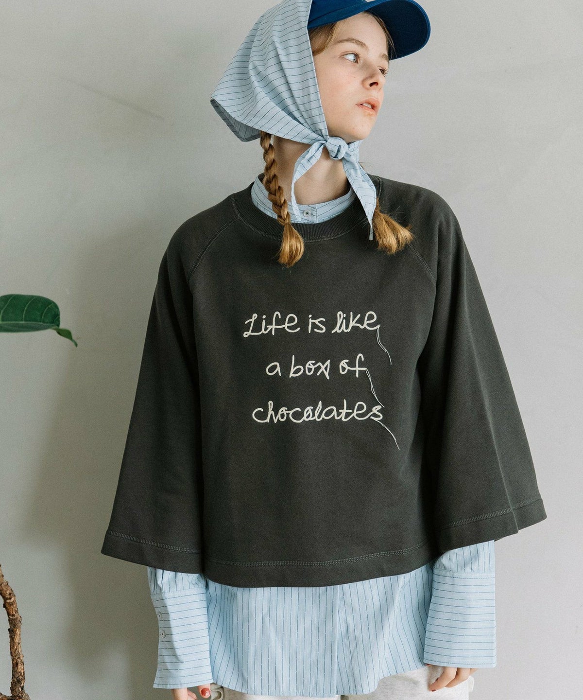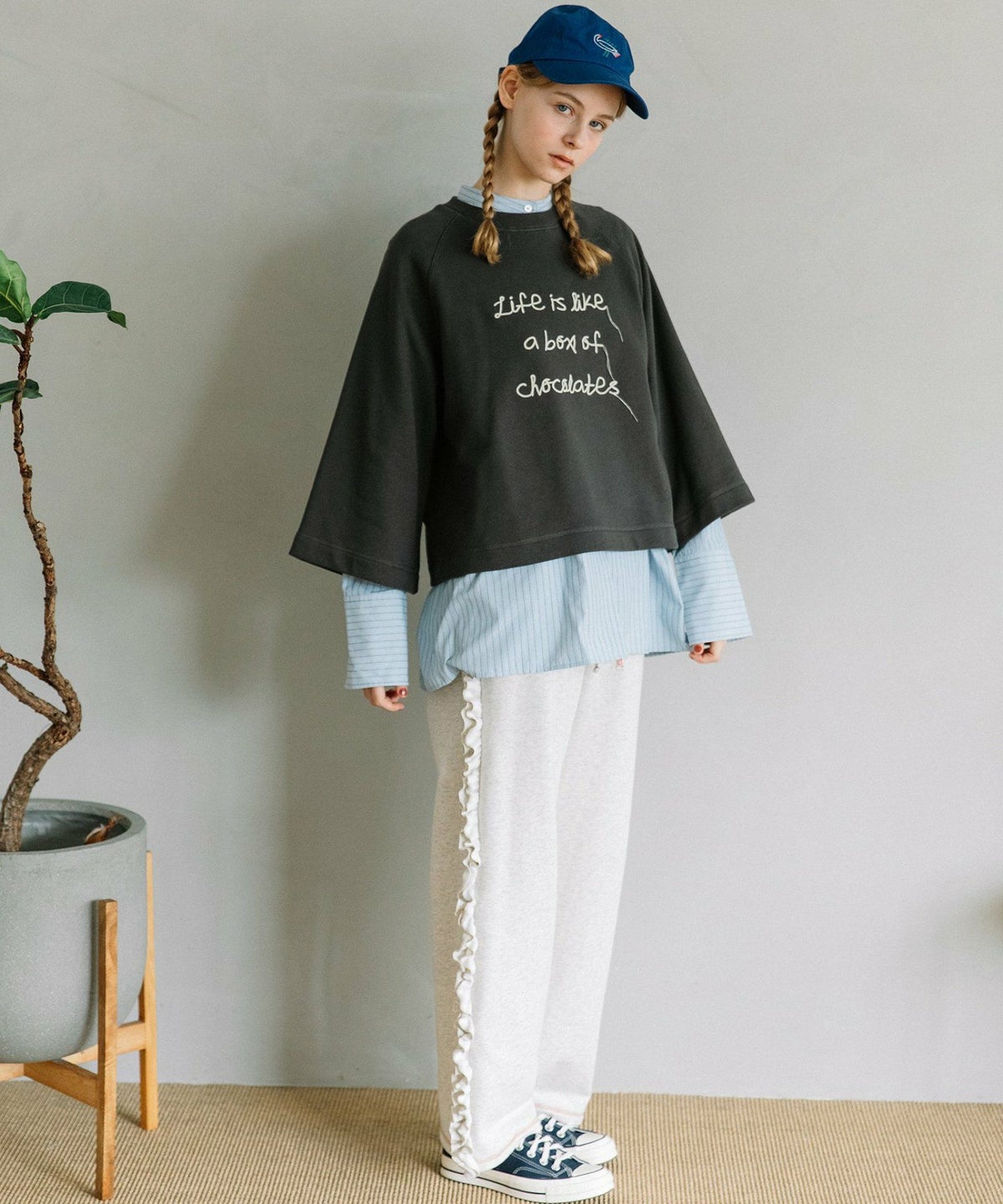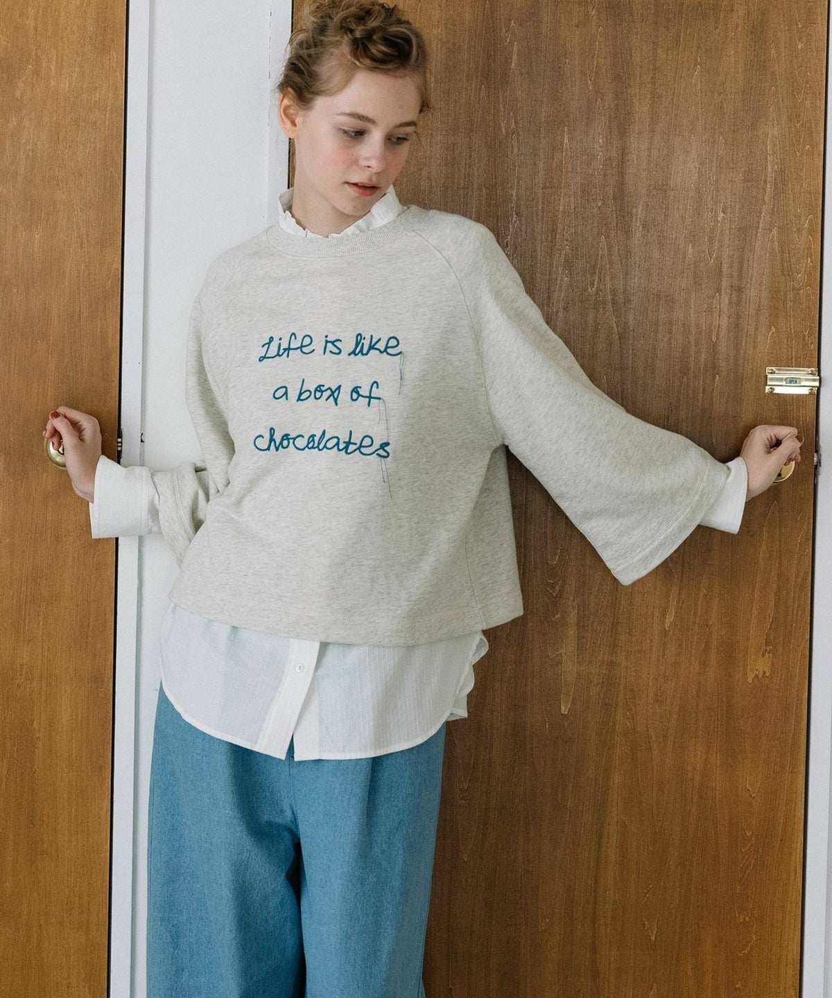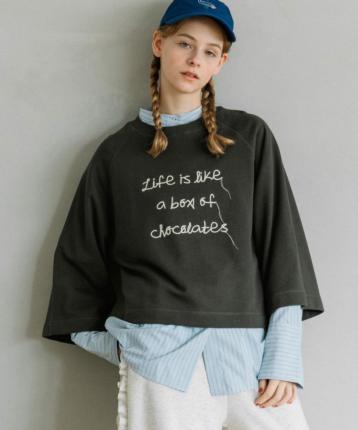 ロゴ刺繍ラグラン裏毛プルオーバー