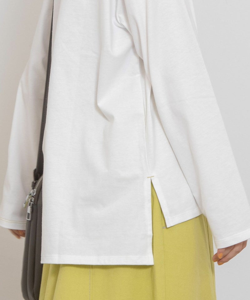 ・左袖口と裾スリットのさりげない配色ステッチ使いもアクセント。