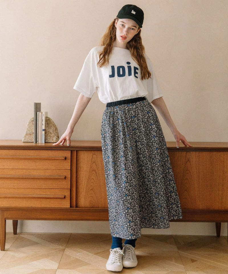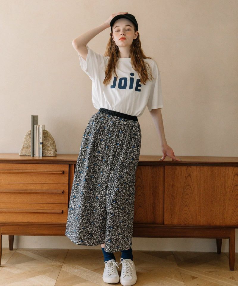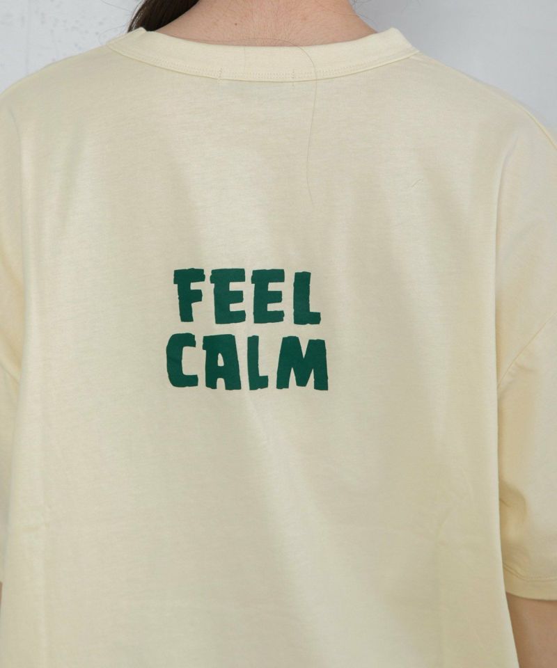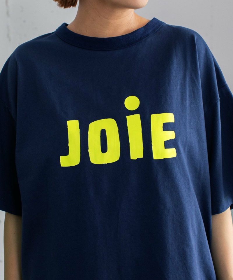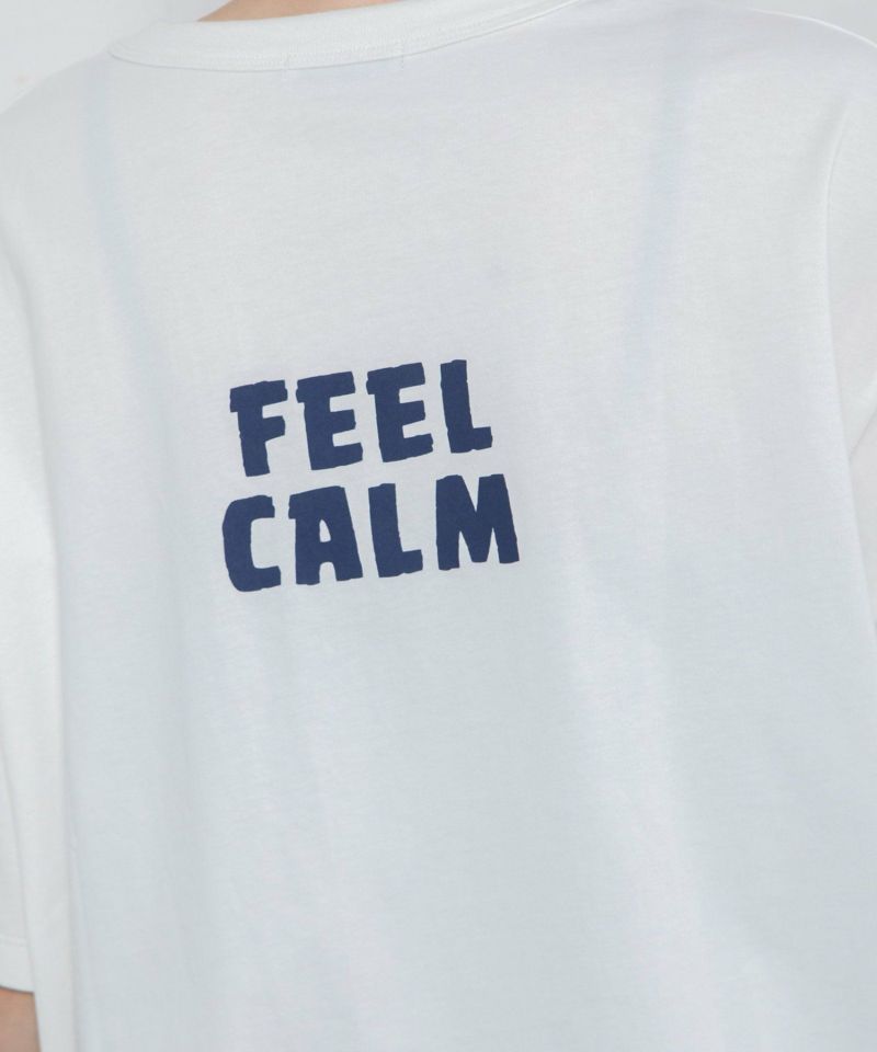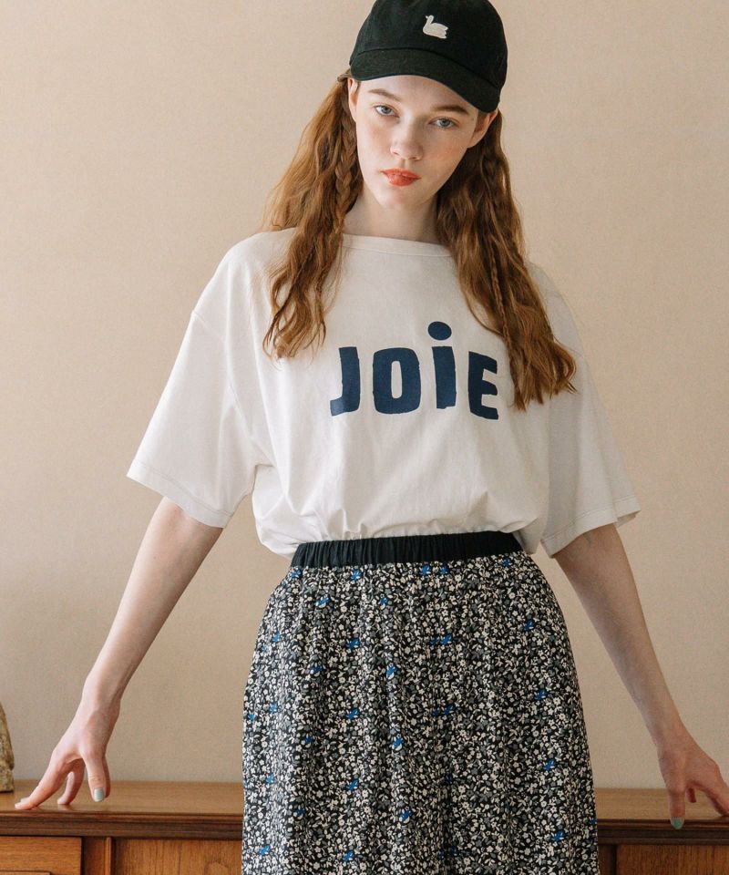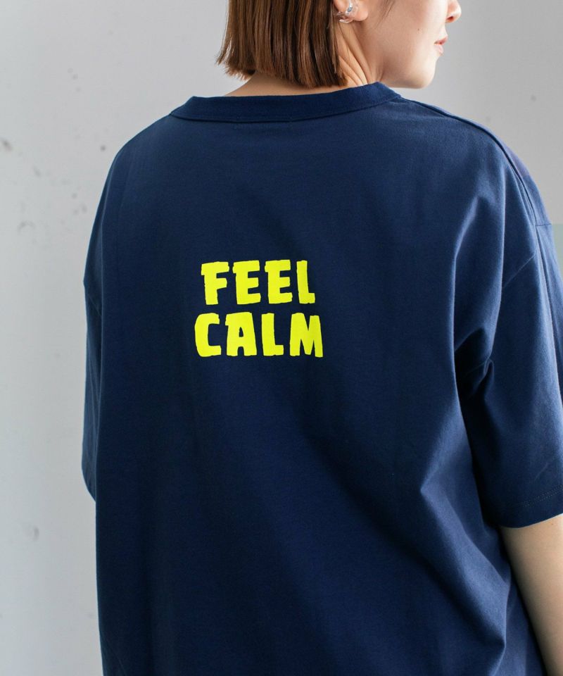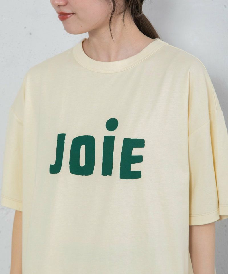 フロントのハンドペイント風の大きなロゴがポイントのTシャツ。後ろ姿もおしゃれなバックプリント。ラフに着られるゆとりのあるサイズ感で袖口、裾のさりげない配色ステッチがアクセント。