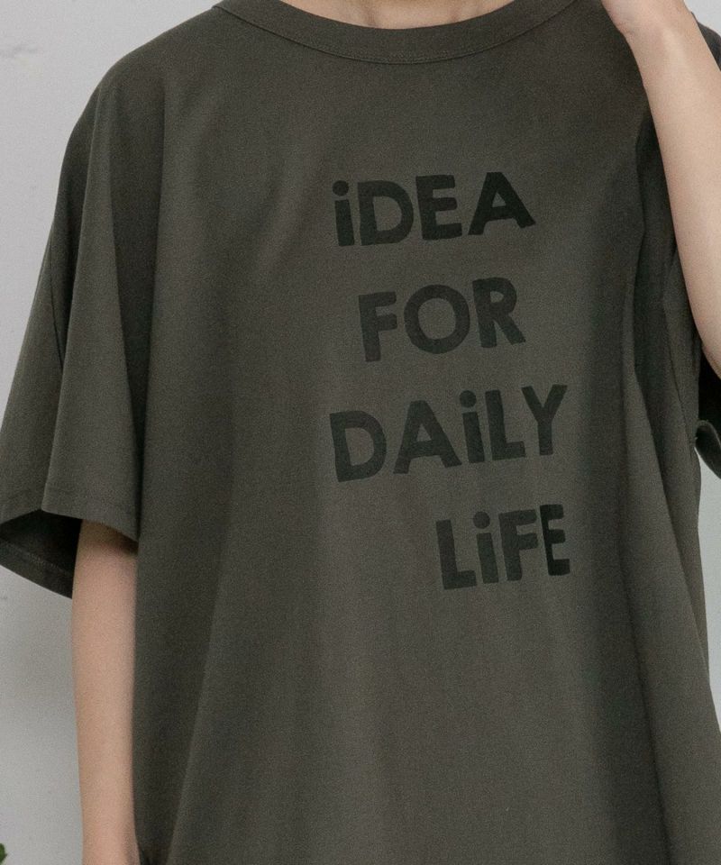 イレギュラーな裾のラインがデザインポイントのトップス。ゆったりとした身頃がリラクシーな雰囲気です。落ち感のあるフレア袖は二の腕をすっきりと見せてくれます。他にはないデザインと、一枚でこなれた印象になる嬉しいアイテム。大文字と小文字をミックスしたプリントもポイントです。