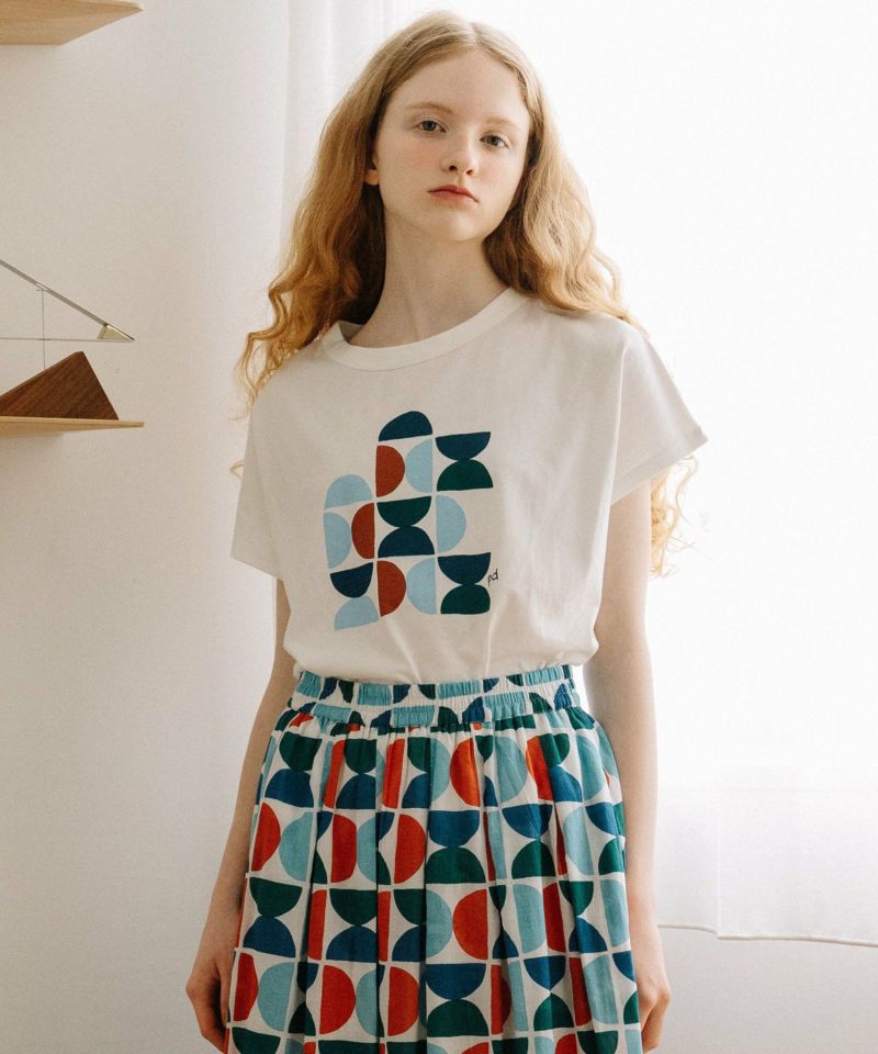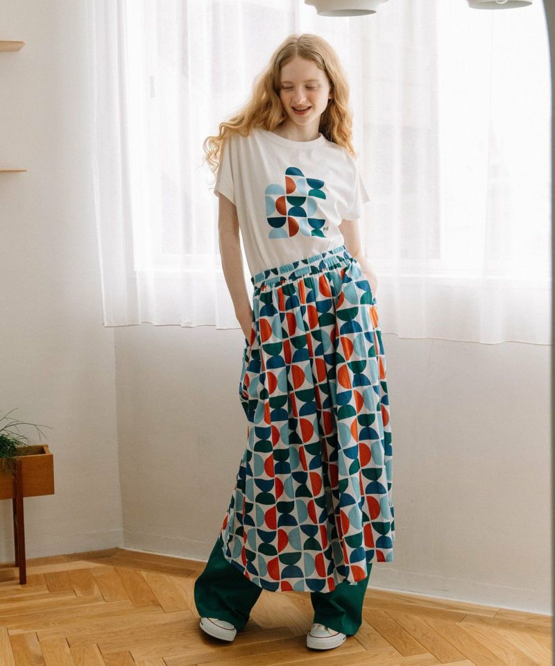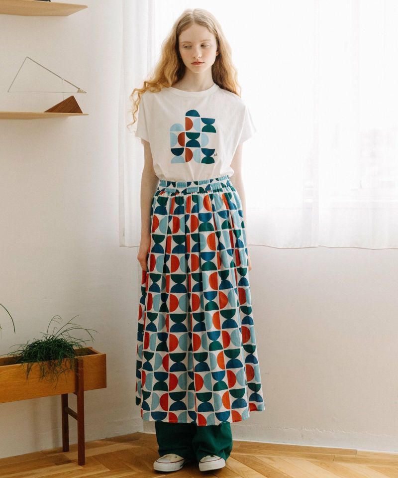 同モチーフを使った 2511146981 Art motif print 羽織りシャツや、2511147230 Art motif print タックギャザースカート との組み合わせもお楽しみ頂けます。