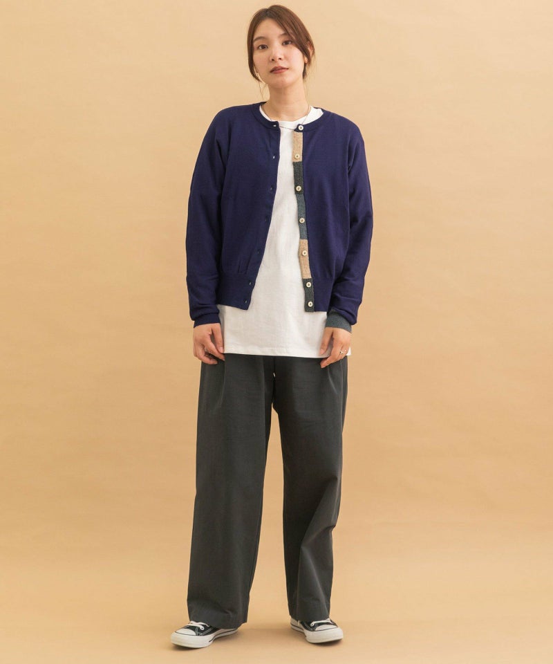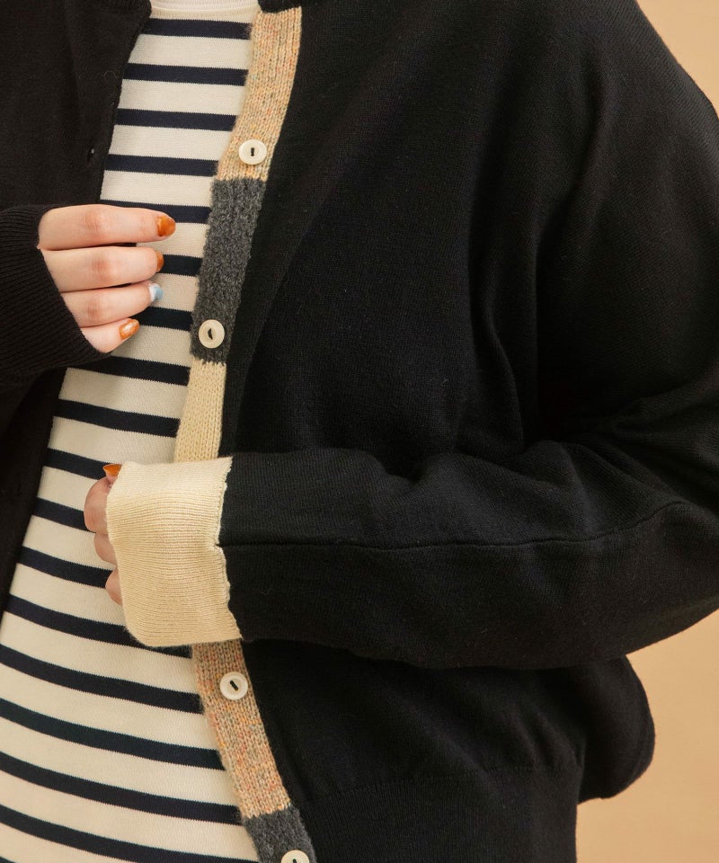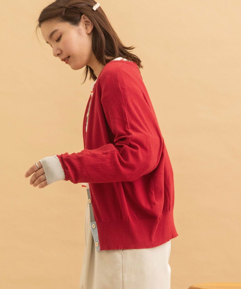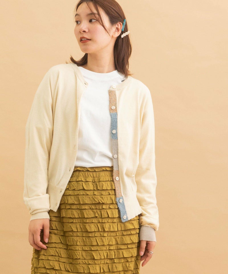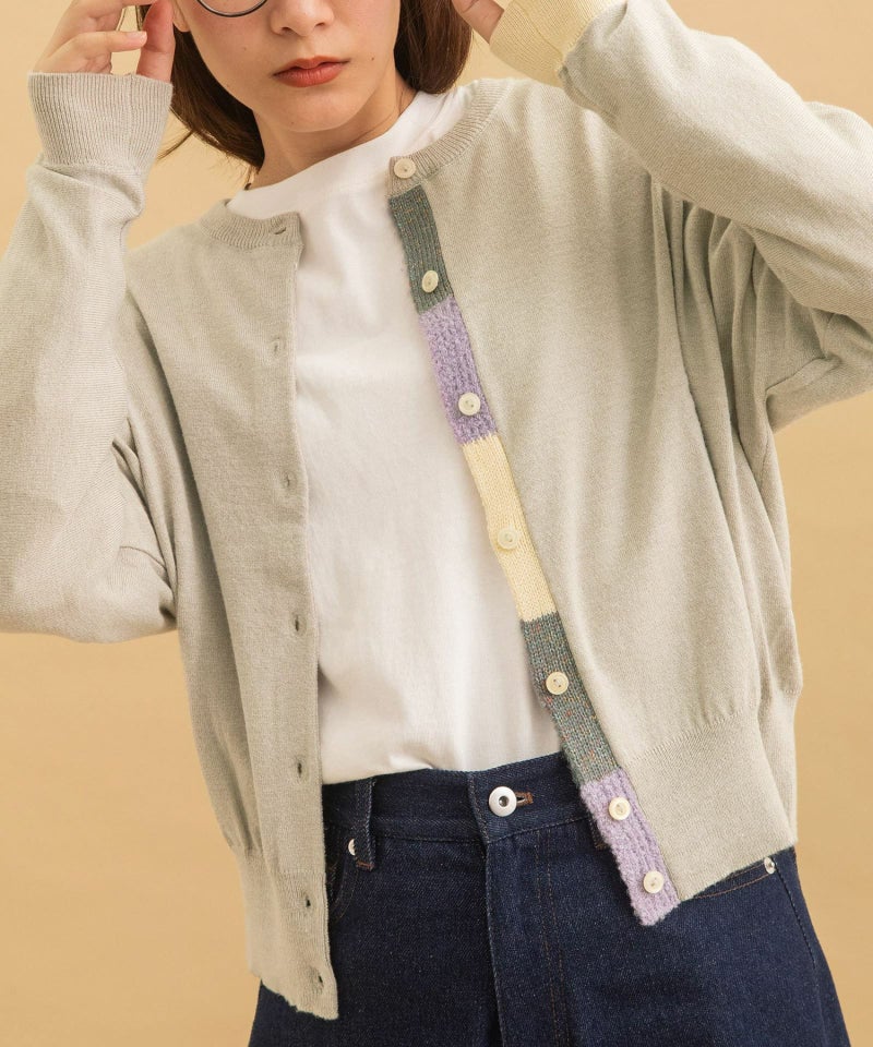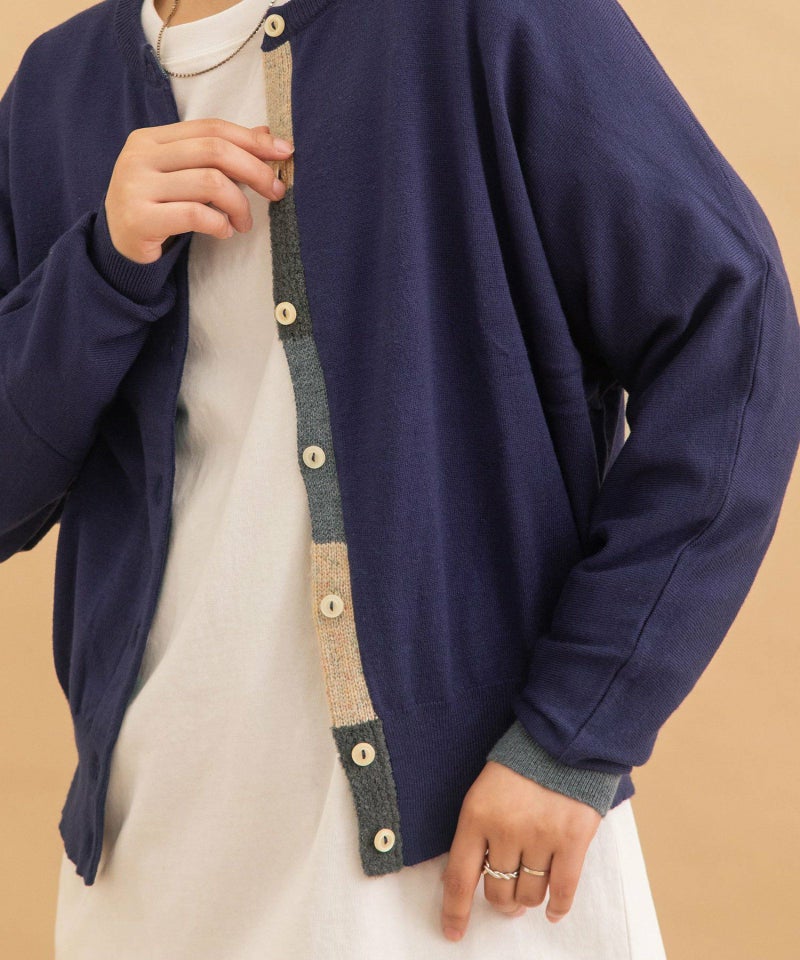 ・フロントの下前立てに配色のボーダーを入れたPOU DOU DOU人気の定番カーディガン。