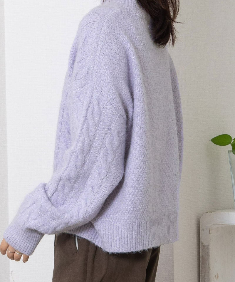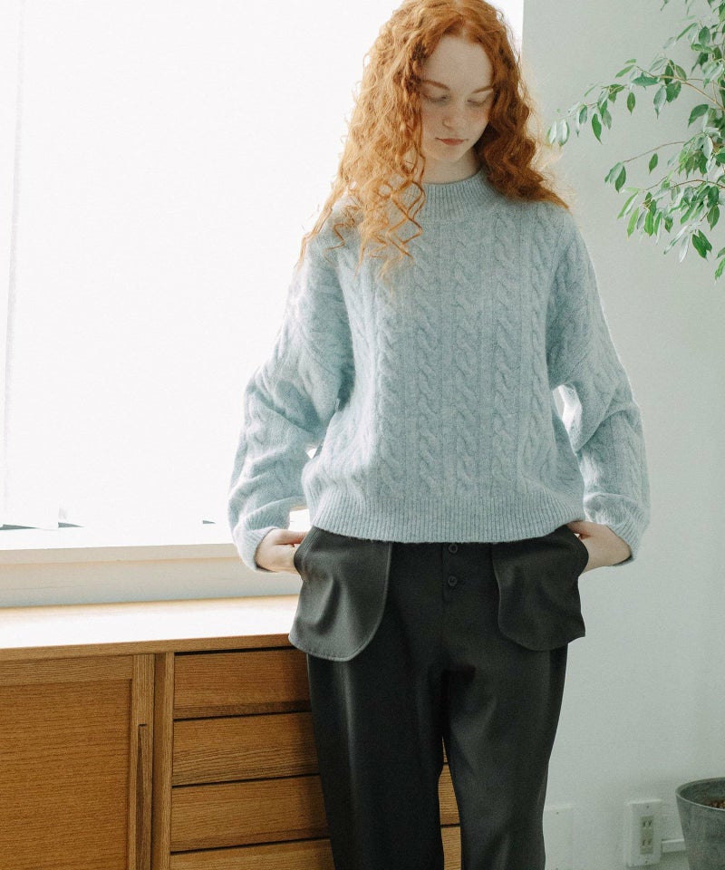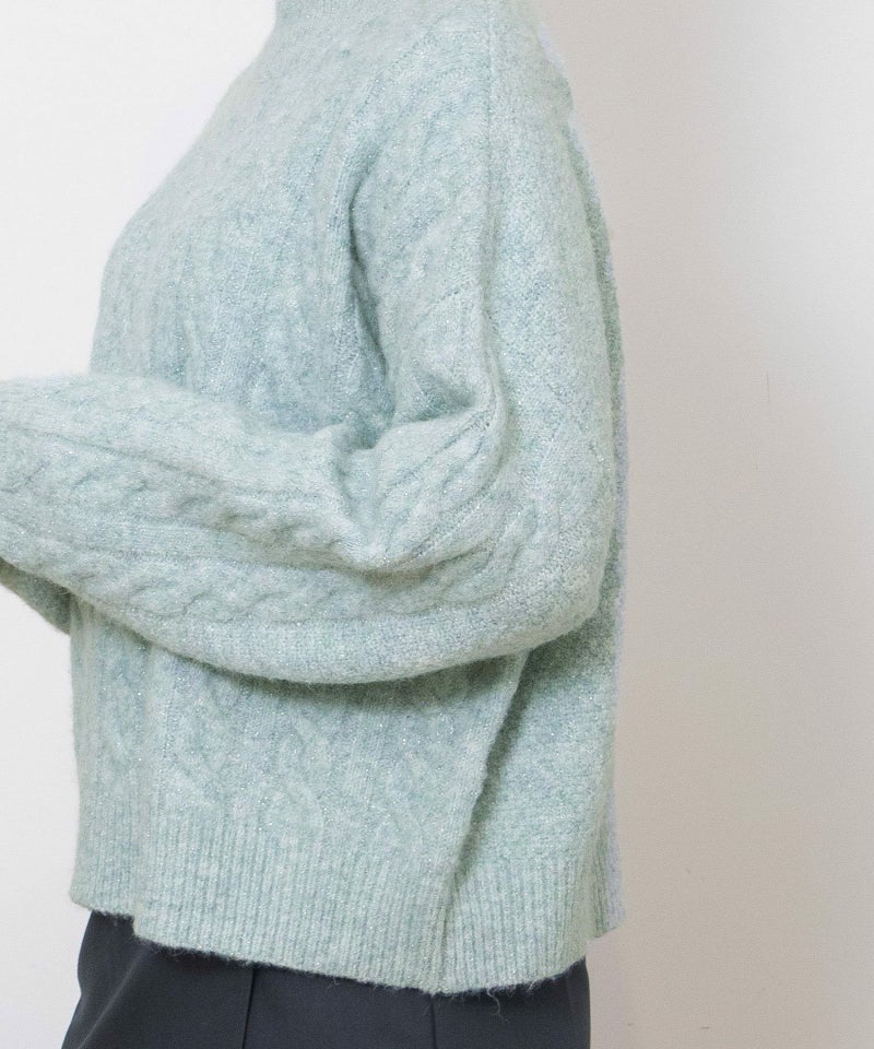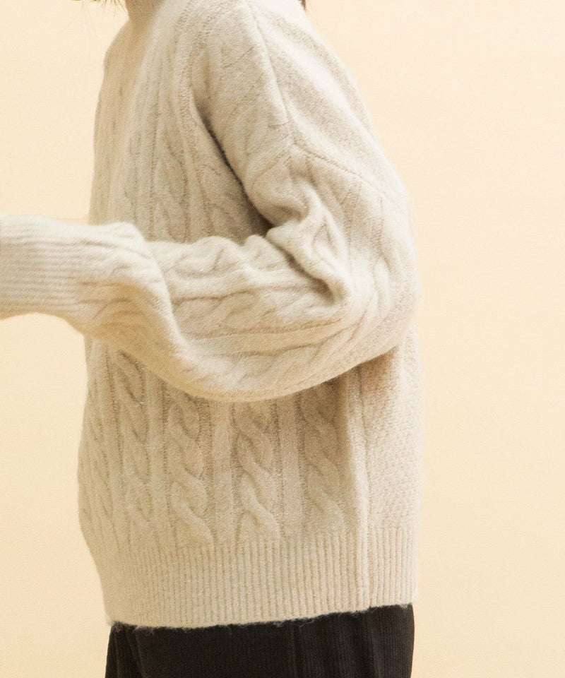 程よいラメ感が華やかなケーブルラメニット。エアリーで軽い着心地で、見た目にも暖かくふわふわとした手触りです。適度な厚みでコートインしやすく、着込む時期にも着やすい1枚。やわらかな色合いの3色展開です。