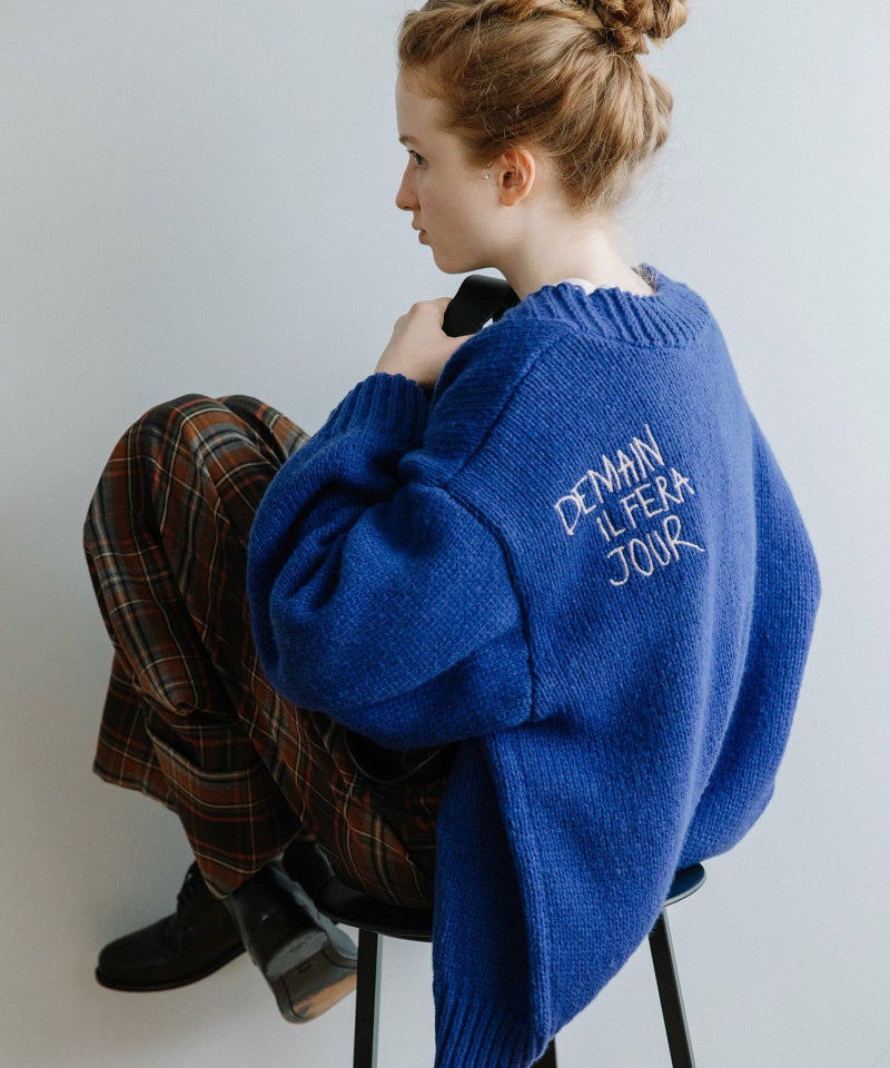 ざっくりとした編み地が魅力のカーディガン。ゆるっとしたオーバーサイズと丸みのある袖が、抜け感のあるやわらかいシルエットをつくります。左肩に施したロゴ刺繍が、シンプルな中にもアクセントをプラス。ロンTやワンピースにラフに羽織るのがおすすめです。
