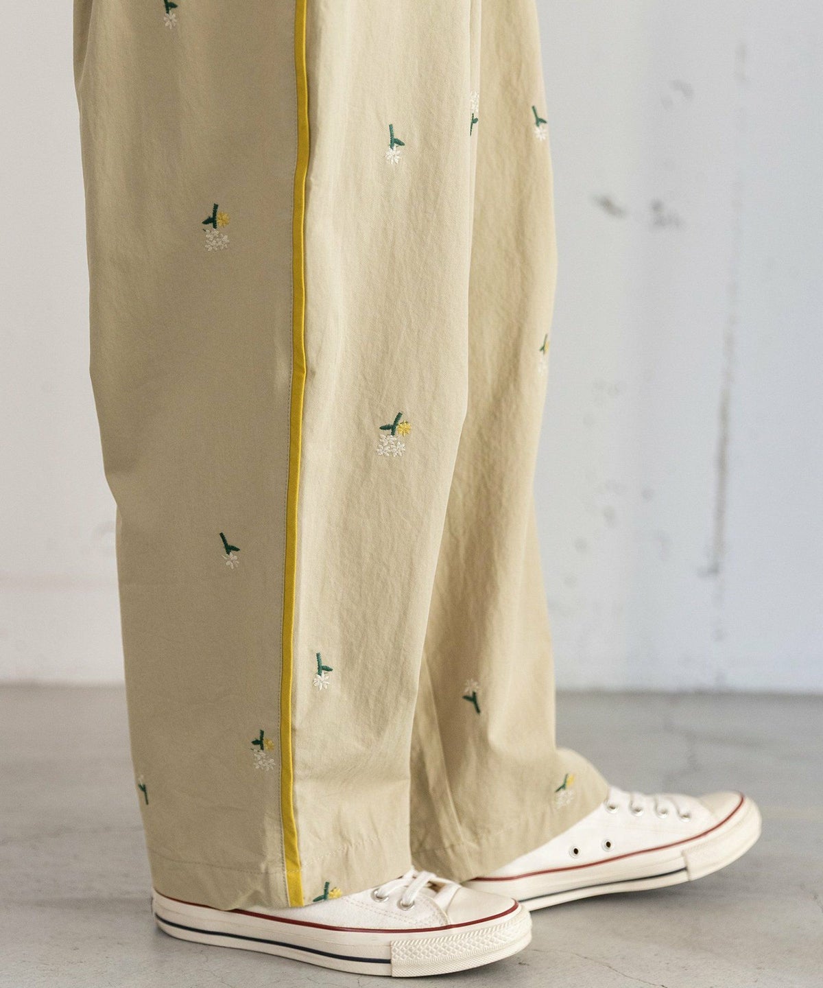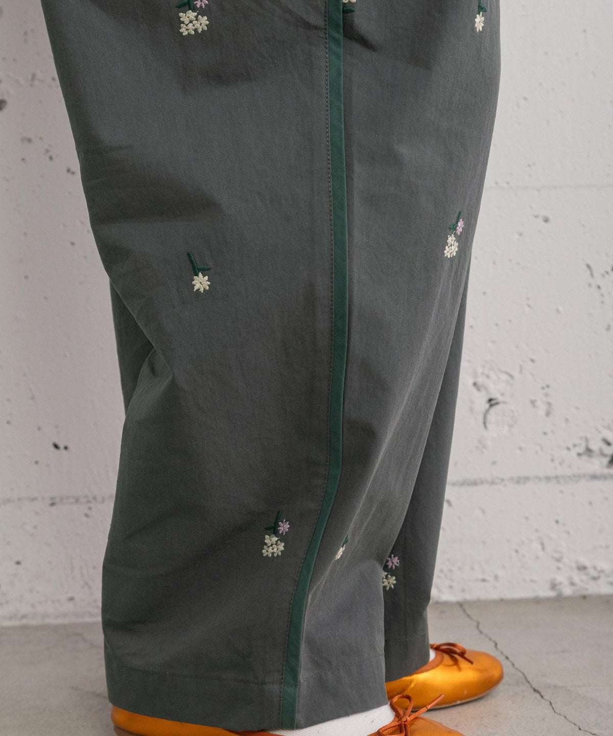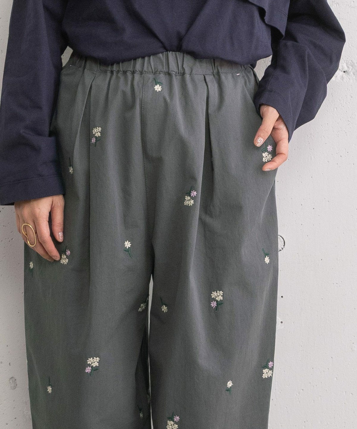 フラワー刺繍タックパンツ