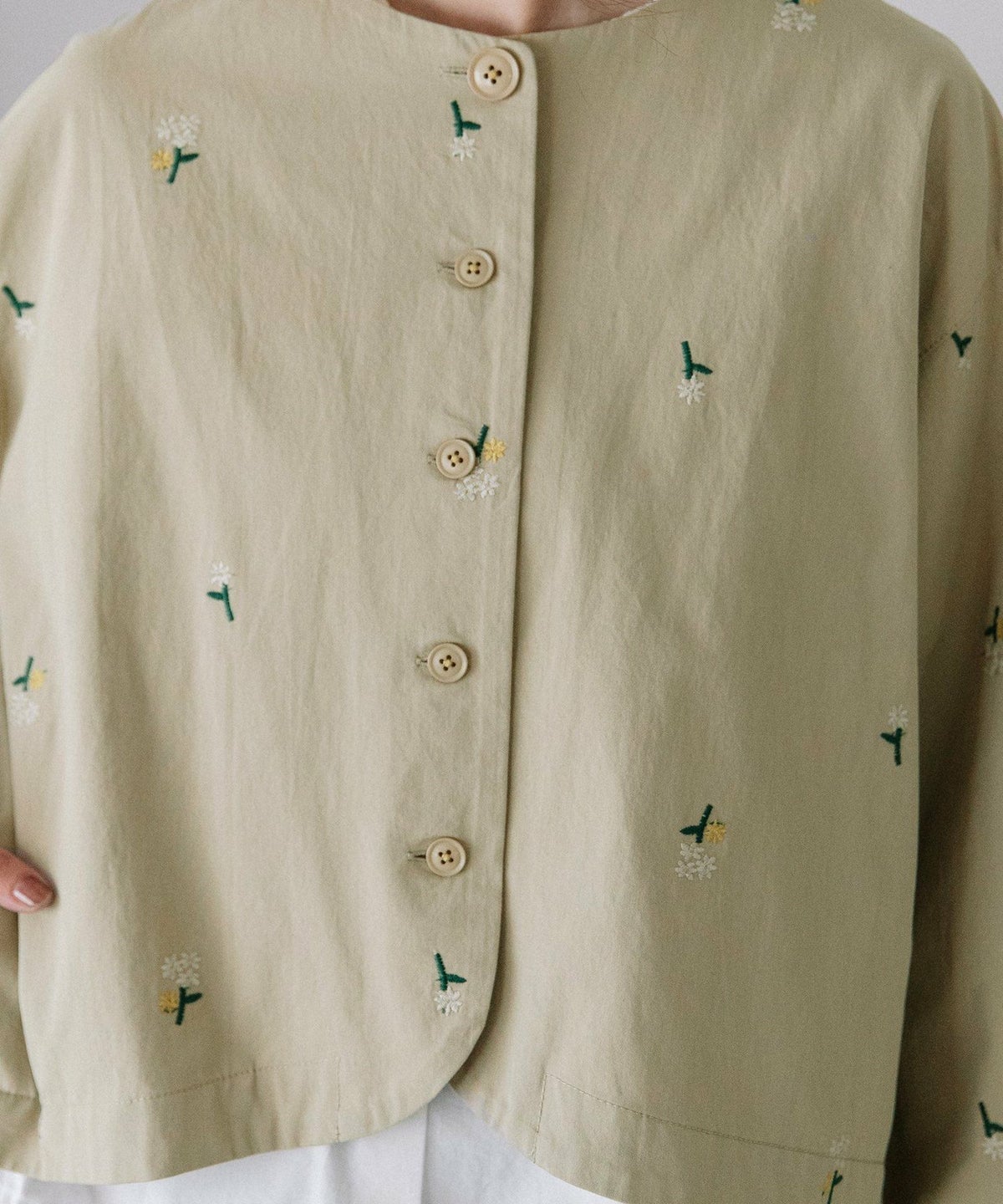 フラワー刺繍クロップドジャケット
