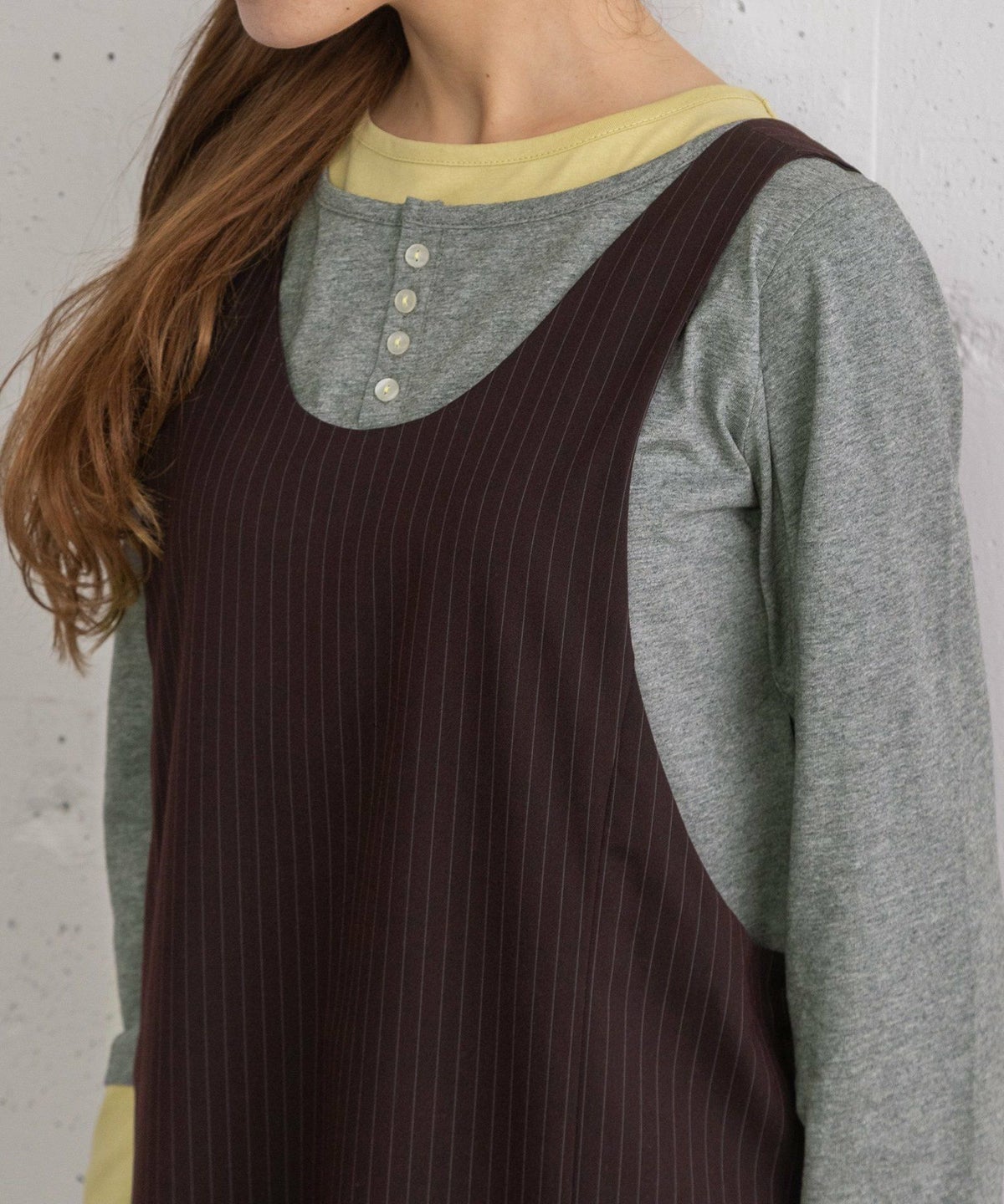 レイヤード風ヘンリーネックトップス