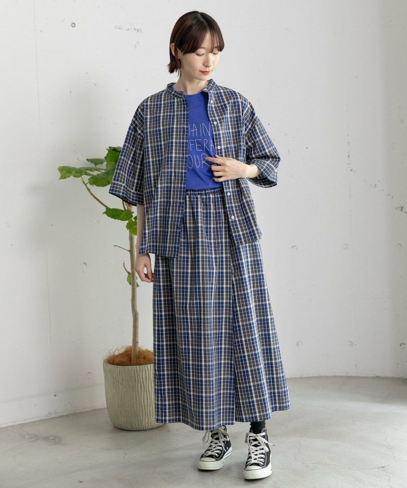 同素材の2511146989 マドラスチェックシャツとのセットアップもお楽しみ頂けます。