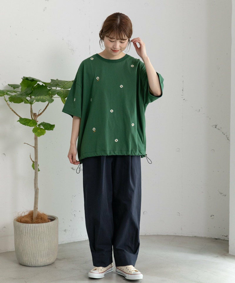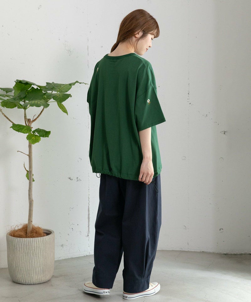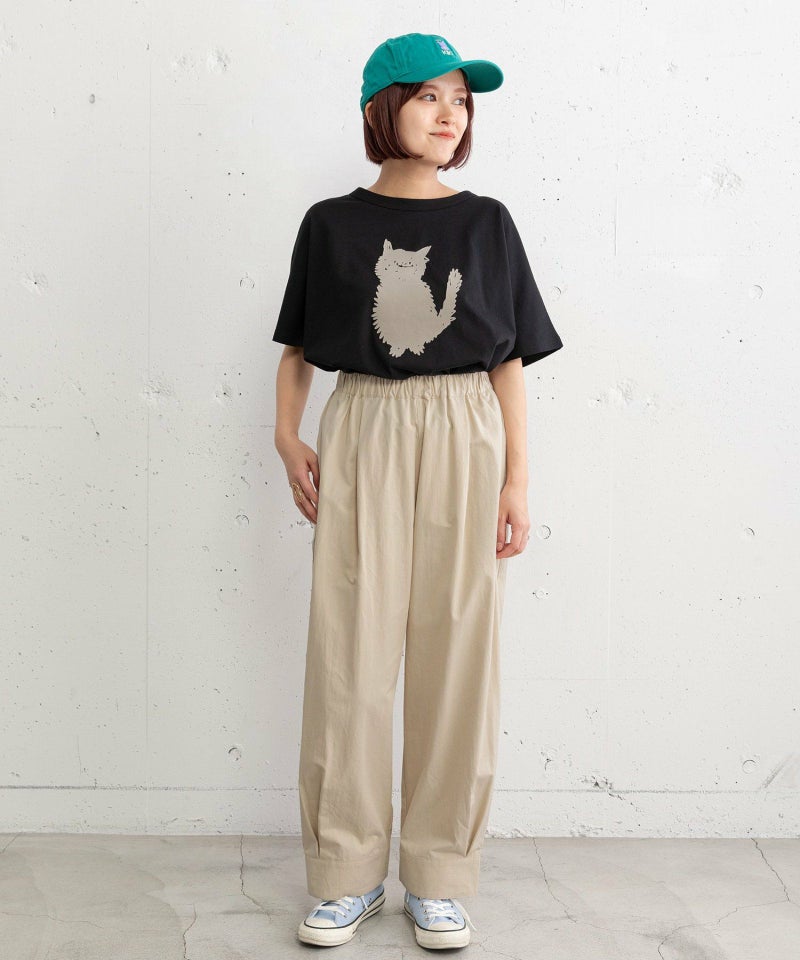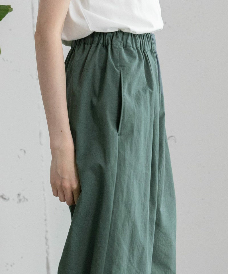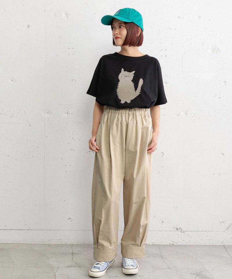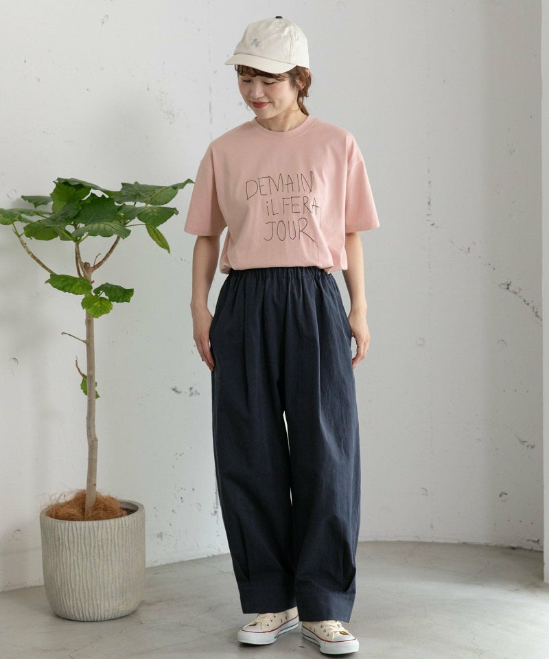裾をまとめてタックを入れた、立体感のあるコクーンシルエットが特徴的なパンツ。ヒップから太もも周りはゆったりとさせ、裾に向かって少し細くなるシルエットで、脚のラインを拾わずに足元をすっきりと見せてくれます。コットンツイル素材でカジュアルな雰囲気を楽しめるアイテムです。ウエストはゴム仕様で内紐つき。両サイドポケット付き。