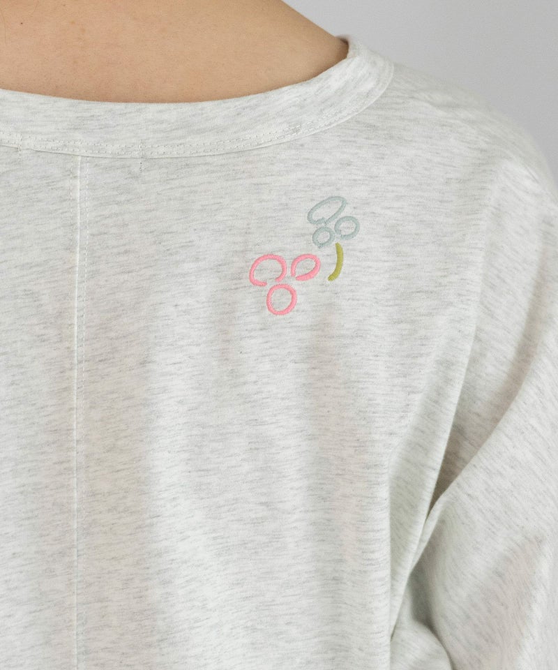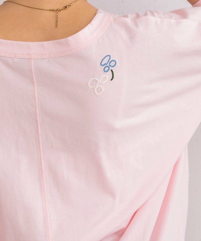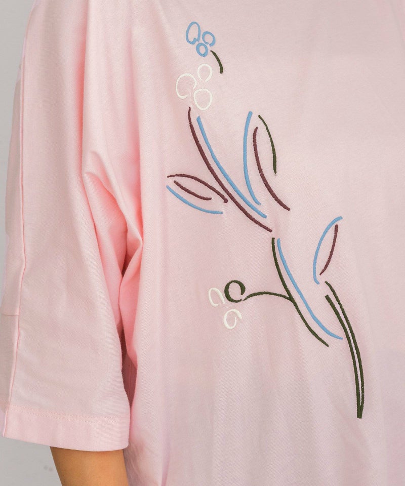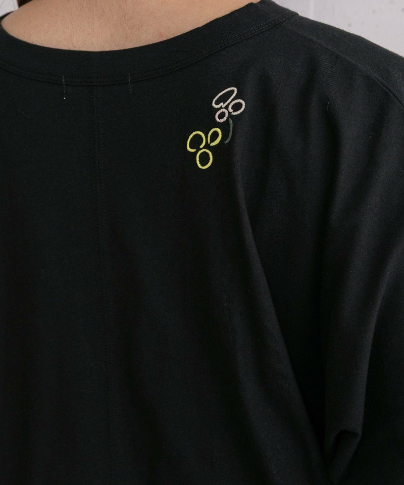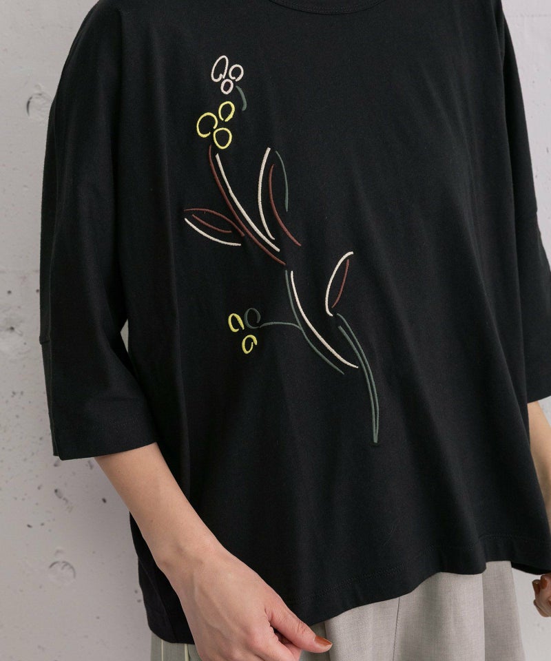 身頃続きの袖でゆったりとしたサイズ感のドルマンスリーブトップス。滑らかな綿素材を使用しています。踊るような手描きのフラワーモチーフを4色カラーで刺繍しました。長すぎない着丈で、ゆったりしたパンツやロングスカートとも相性良く着て頂けます。