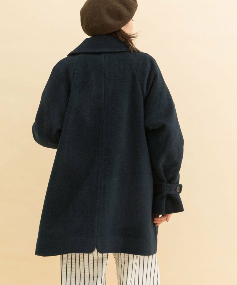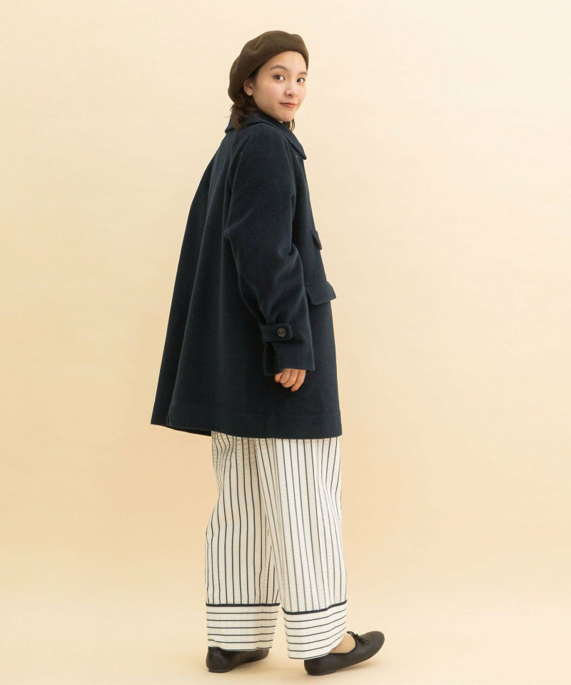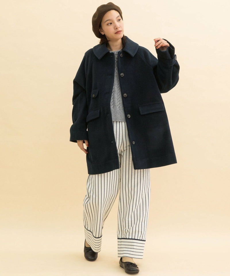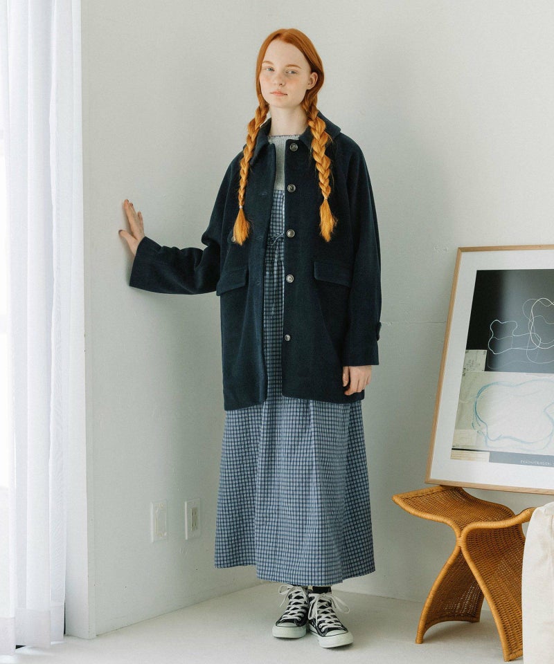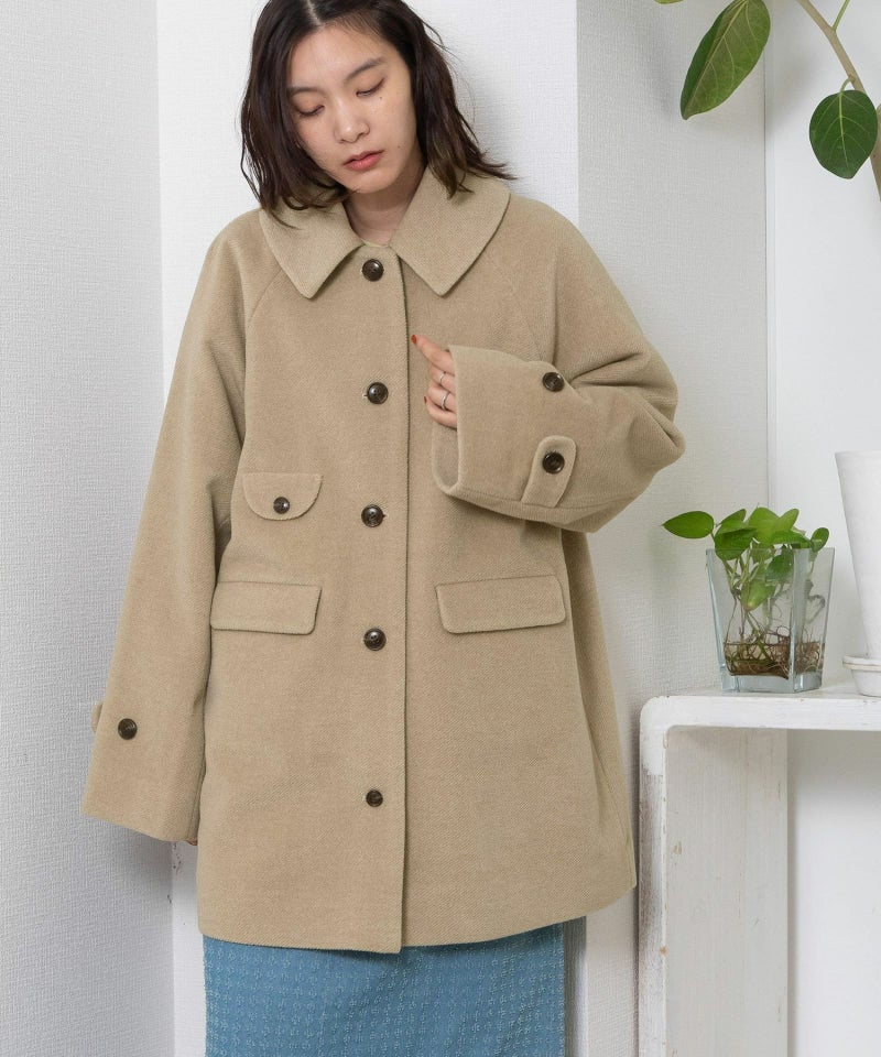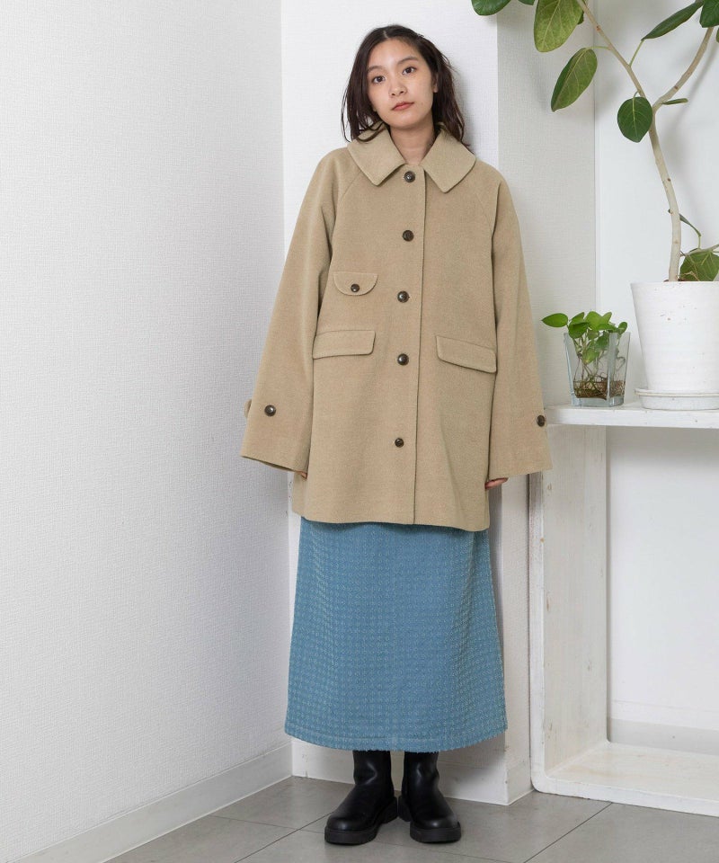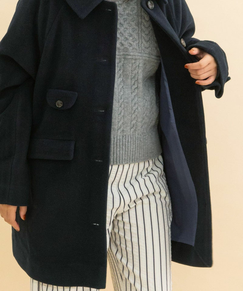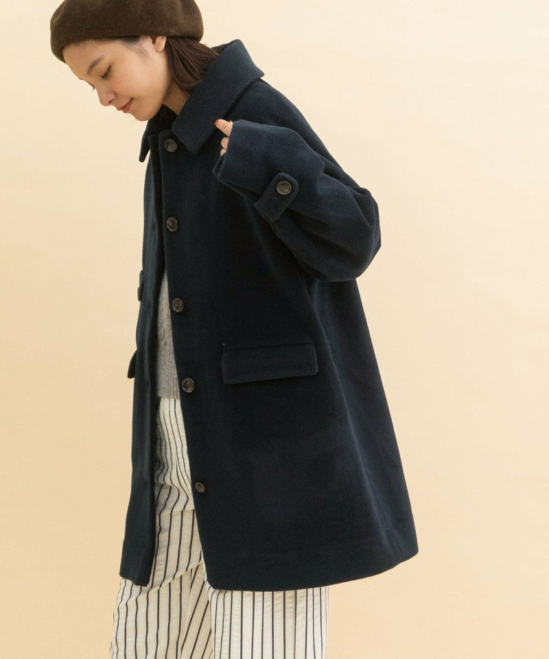 シンプルで使いやすい、バランス感が絶妙なミドル丈のステンカラーコート。ロングより気軽に羽織れてデイリー使いしやすい丈感です。両身頃にはフラップつきの玉縁ポケットと小さなフェイクポケットをアクセントに。太めの袖口はタックを取ってボタンで小さく調整可能です。