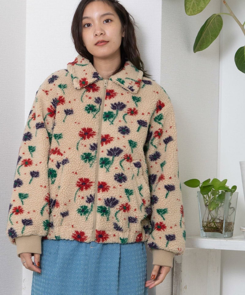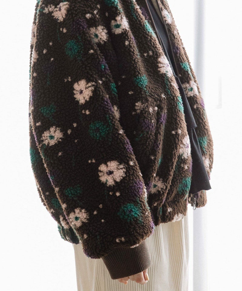 ・フラワーモチーフのジャガードボアが目を惹くブルゾン。ゆったりとしたサイズ感でラフに着られます。