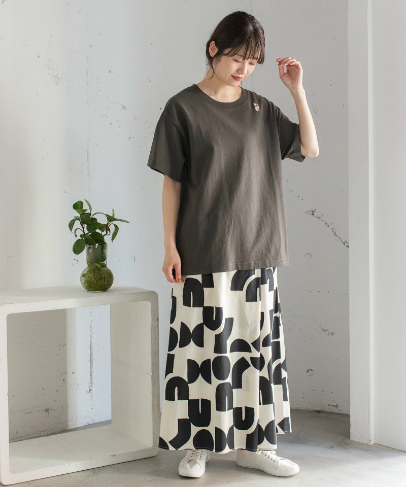 同じモチーフの2511141287 アートプリントTシャツとの合わせや、2511146958 アートプリントドロストテールシャツとセットアップもおすすめです。