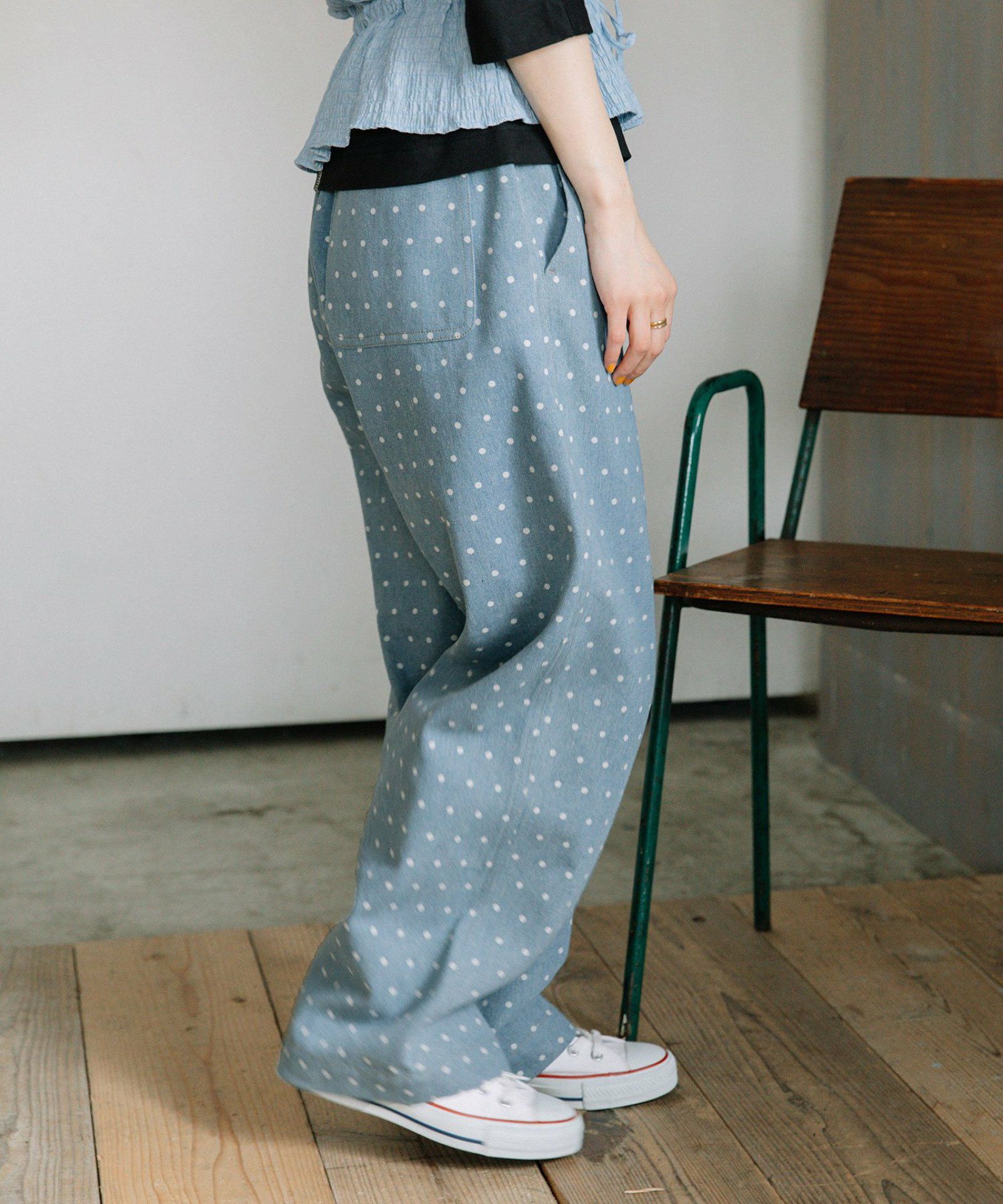 キャッチーなドットデニムパンツ