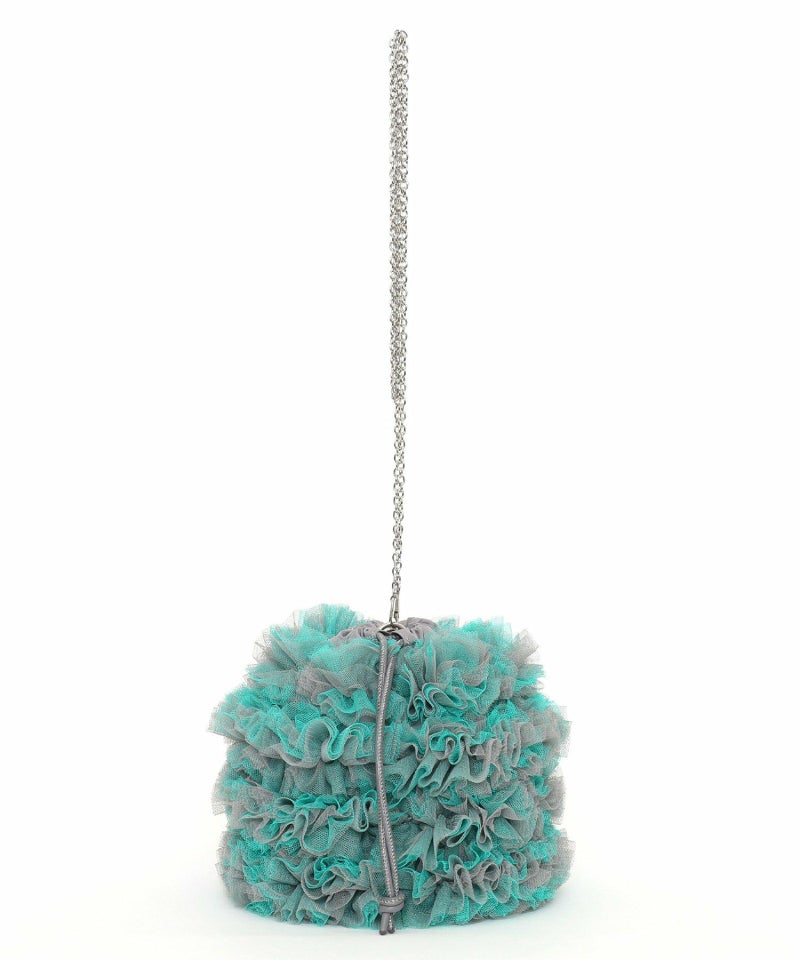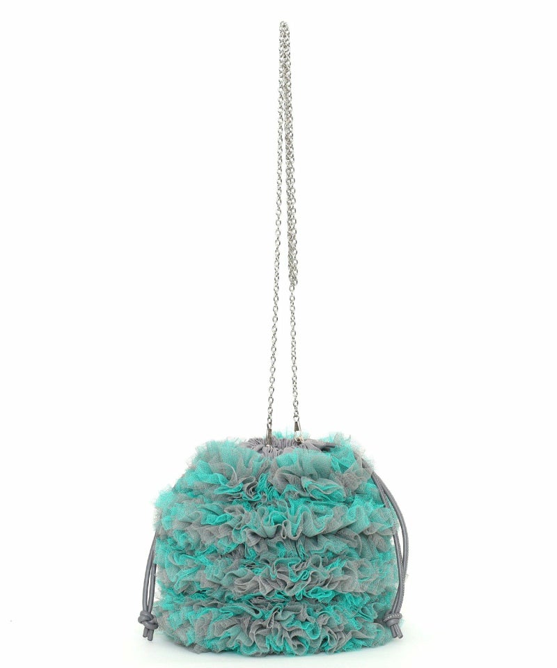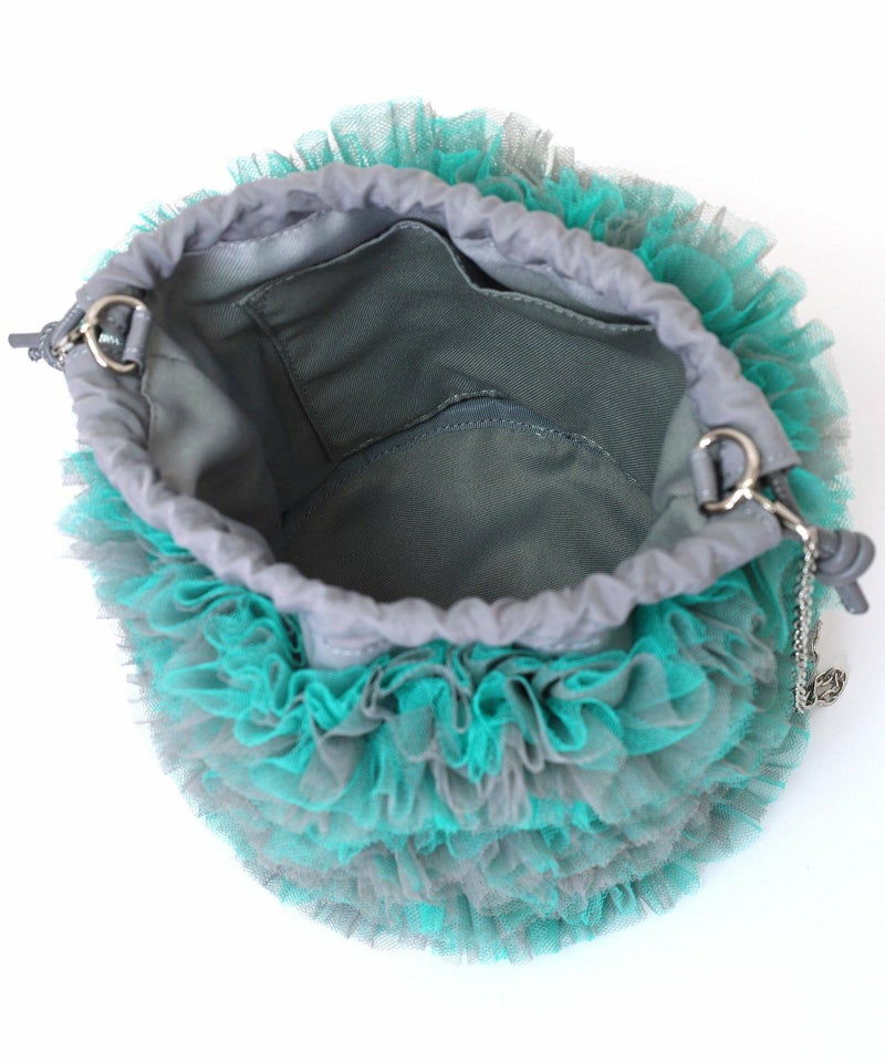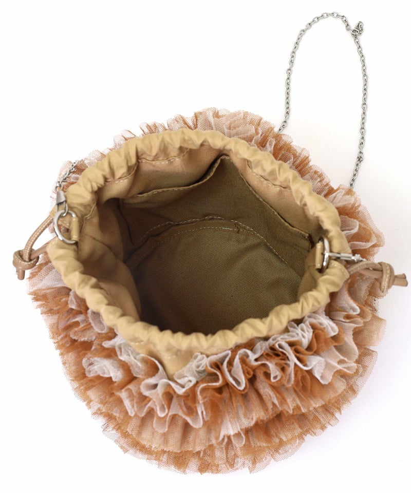 チュール生地をふんだん使ったドロストショルダーバッグ
