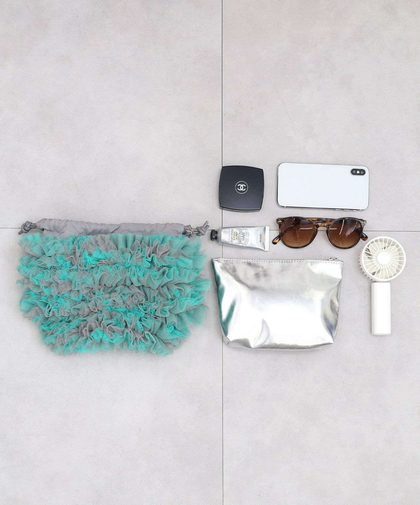 チュール生地をふんだん使ったドロストショルダーバッグ