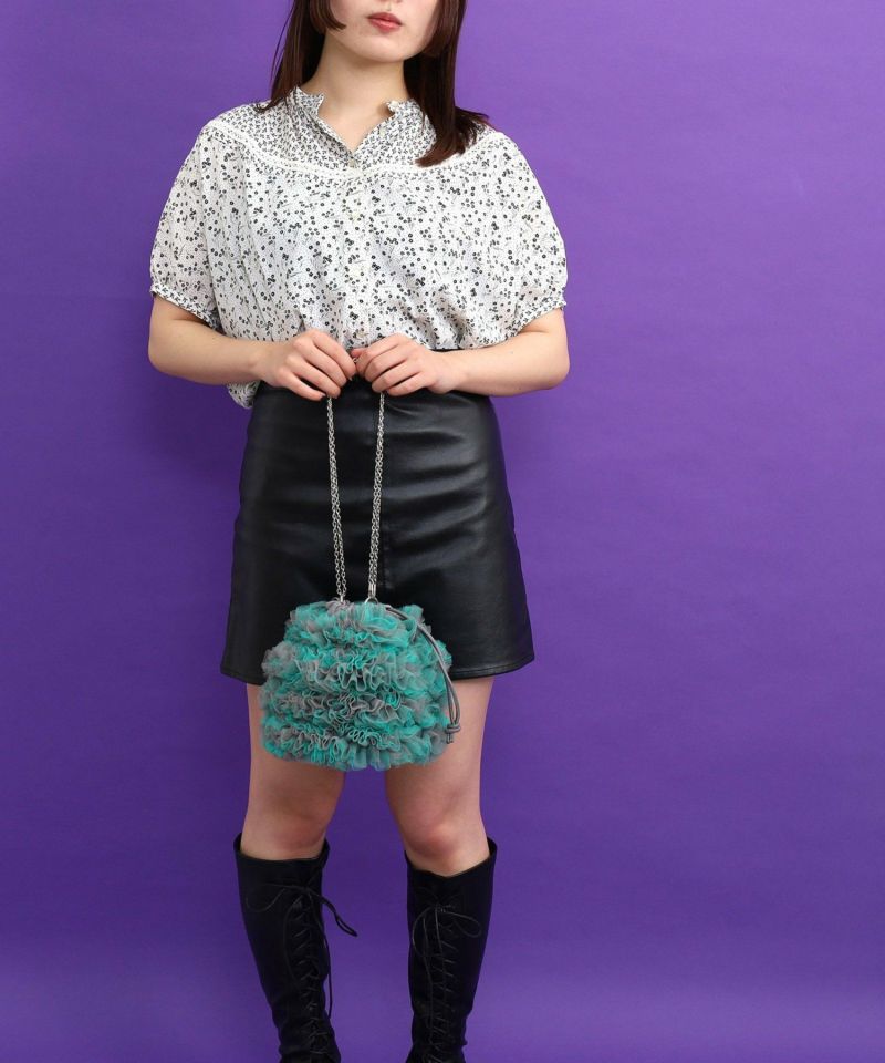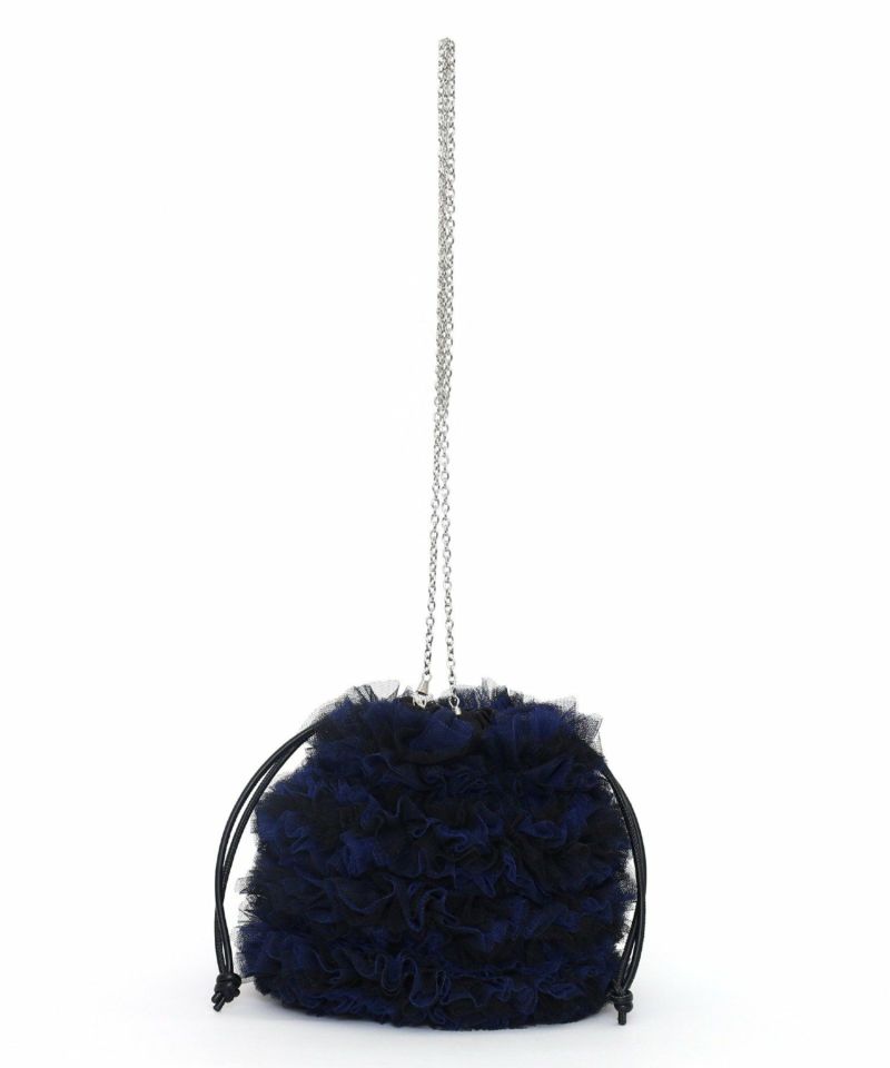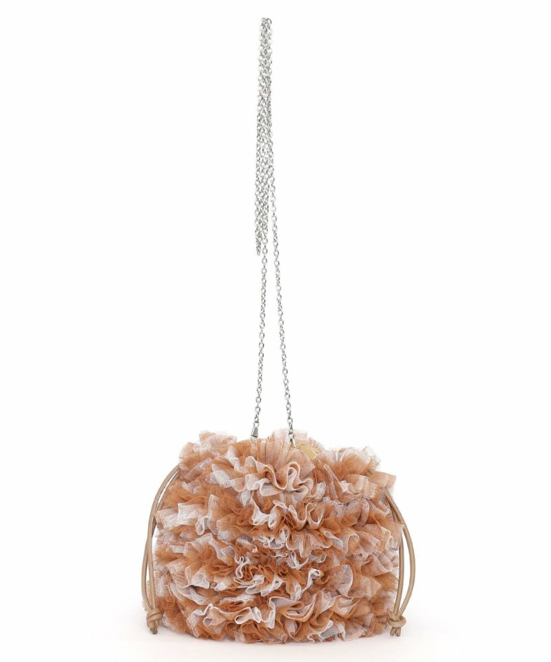 チュール生地をふんだん使ったドロストショルダーバッグ