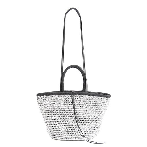 軽やかなショルダーが付いた2WAYかごバッグ。口元のストリングはリボン結びにしてアクセントにしても、そのまま垂らして軽やかに揺らしてもかわいらしい佇まい。ざくざくと編まれた軽い作りで気負わず持つことができ、様々なシーンにフィットしてくれる。ショルダーは繊細な雰囲気のストリングを使用し、軽やかな印象。少し長めのデザインで肩に掛けやすいのもうれしい。