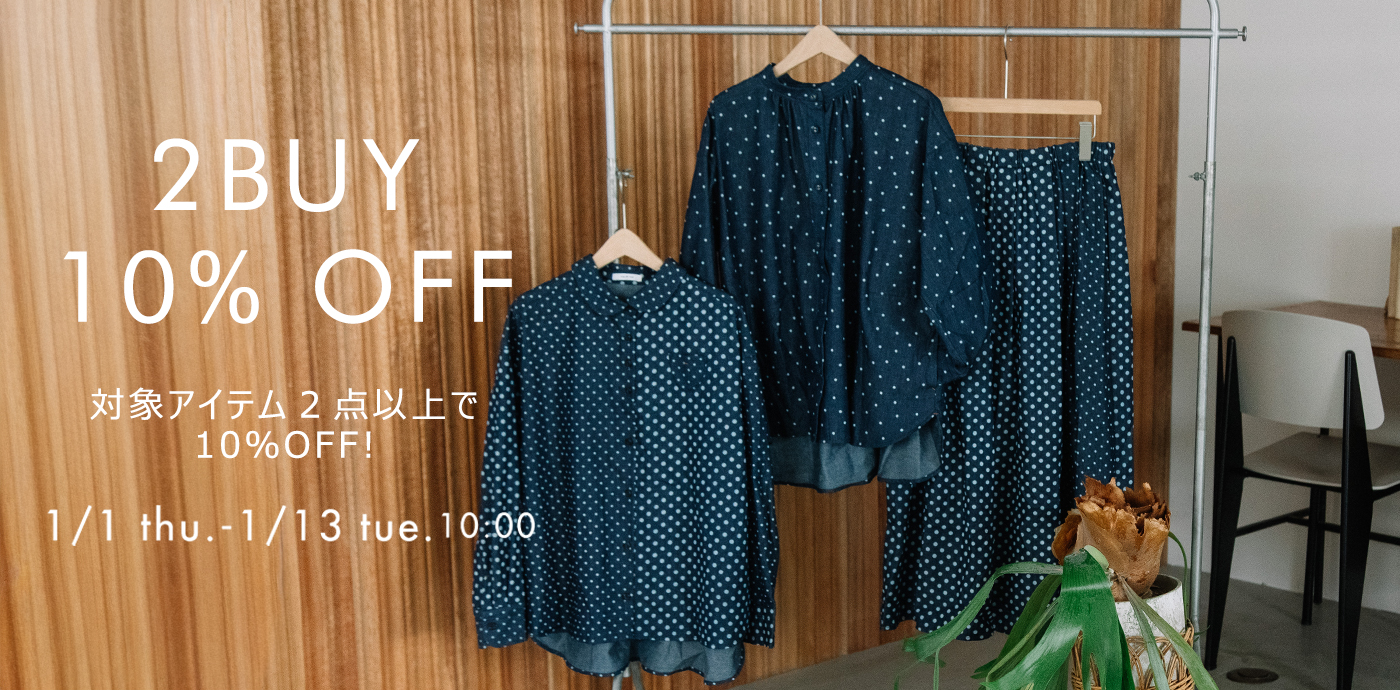 デニムドットプリントバンドカラースモックシャツ