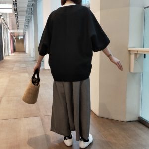 定番のポムパンツは股上が深めですがボリュームを上にしているのでバランス良く見えて