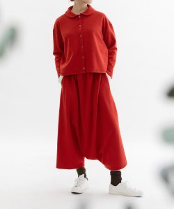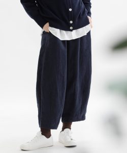 Pommeリネンビエラ起毛裾ダーツ9分パンツ