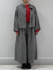 トップスを同素材のマキシパンツとセットアップで着てみました。