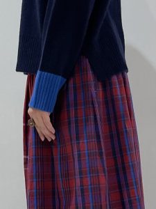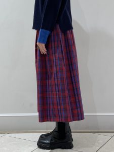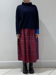 お次はセーターとチェックスカートを合わせたガーリーコーデです。
