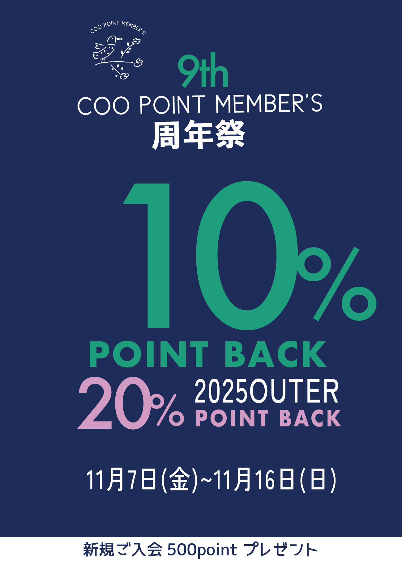 【COO POINT MEMBER’S】9周年! SPECIAL POINT BACK!