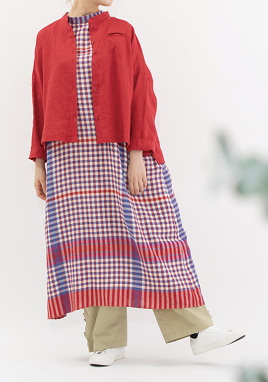コットンリネンキッチンクロス風パネルチェック2wayワンピース