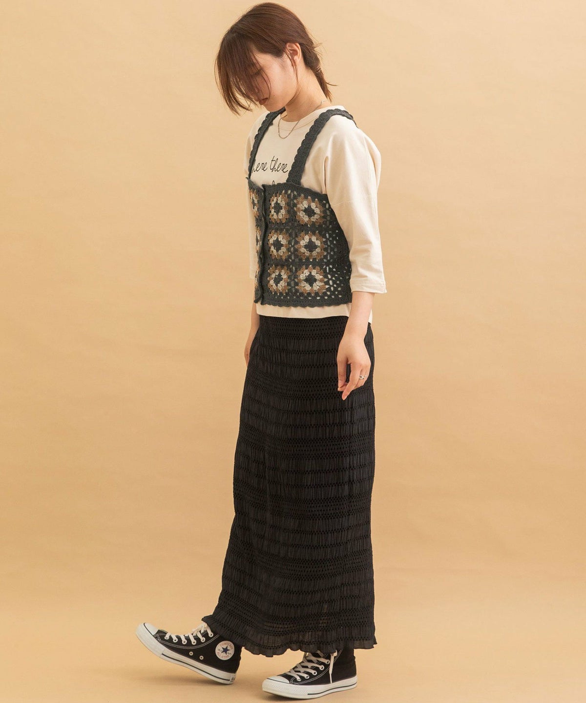 SALE 2BUY 10%OFF 【WINTER SALE】かぎ針風ナローフレアースカート ¥ 9,900 ¥ 7,920 税込 販売期間 2026/02/11 0:00 〜 2026/02/24 10:00 カートに入れる