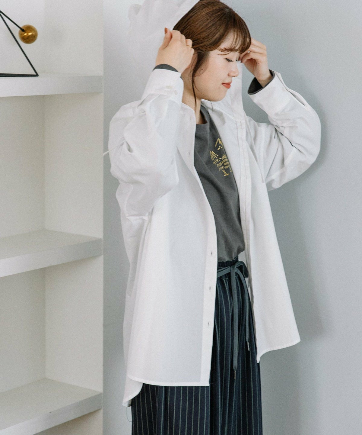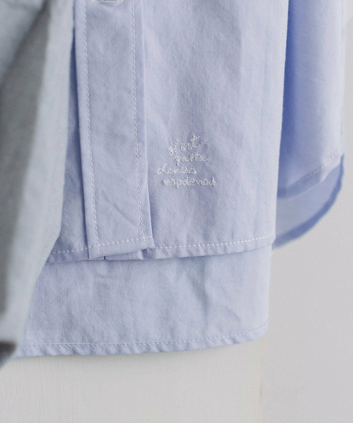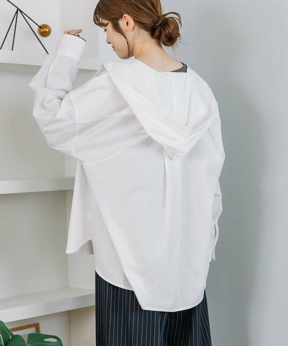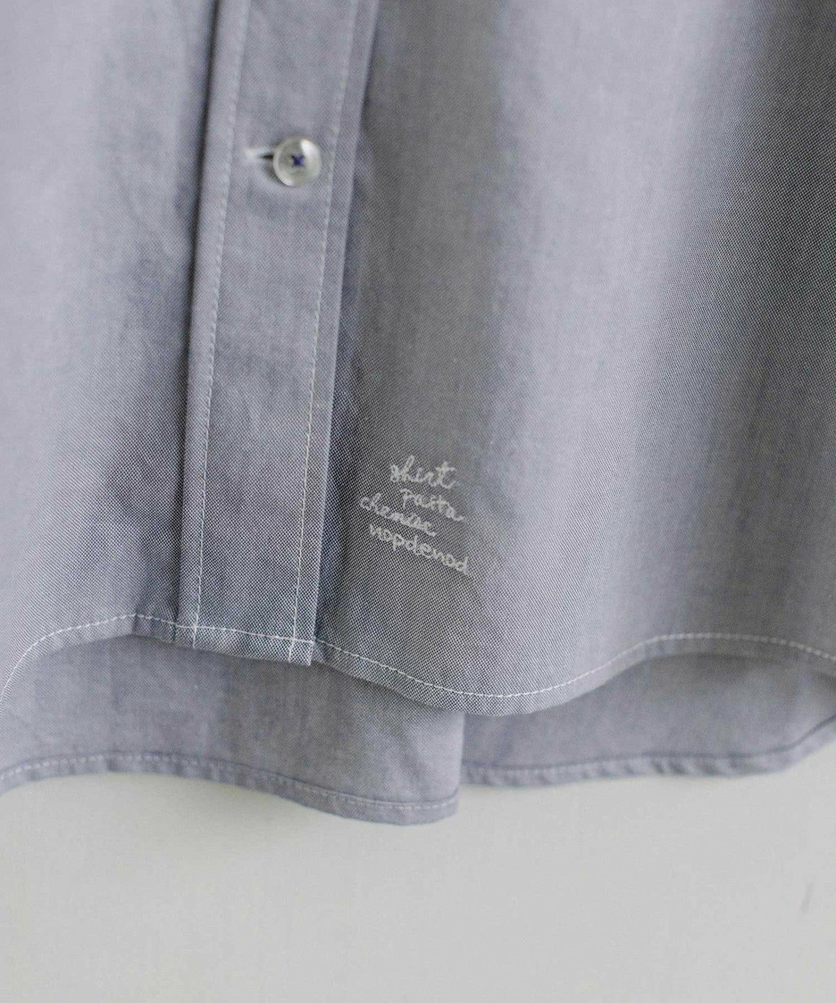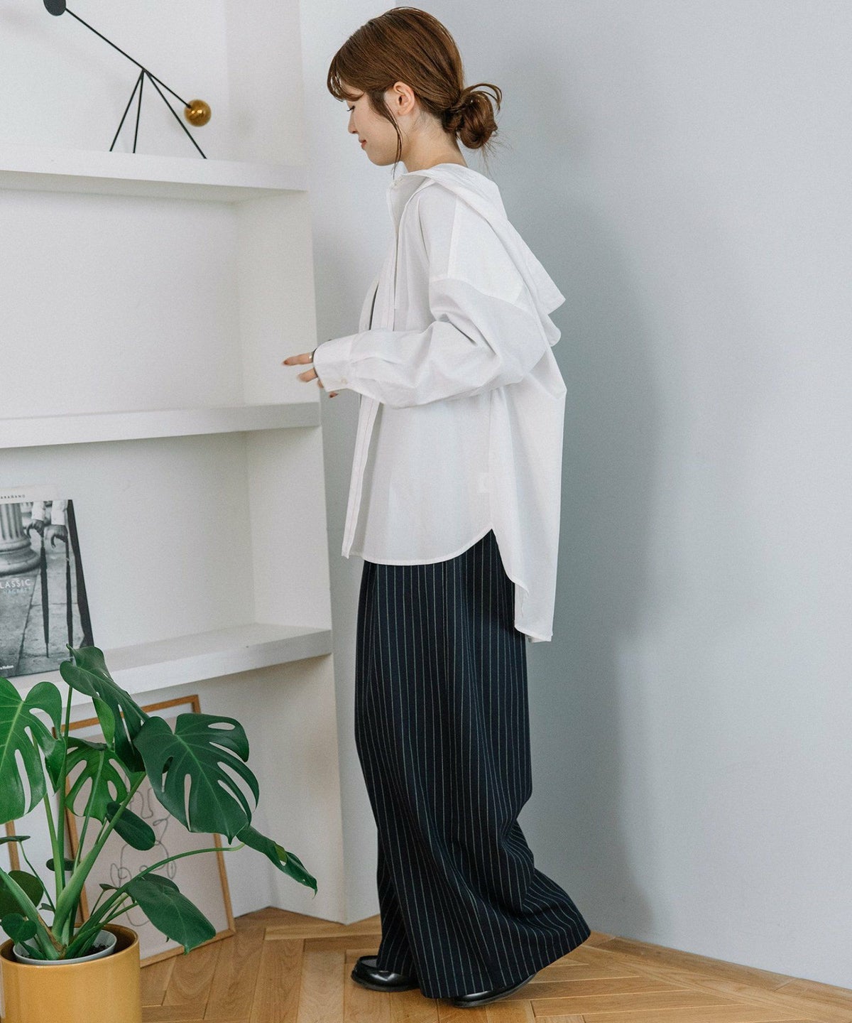【WINTER SALE】コットンサテンストライプバンドカラーポケットシャツ