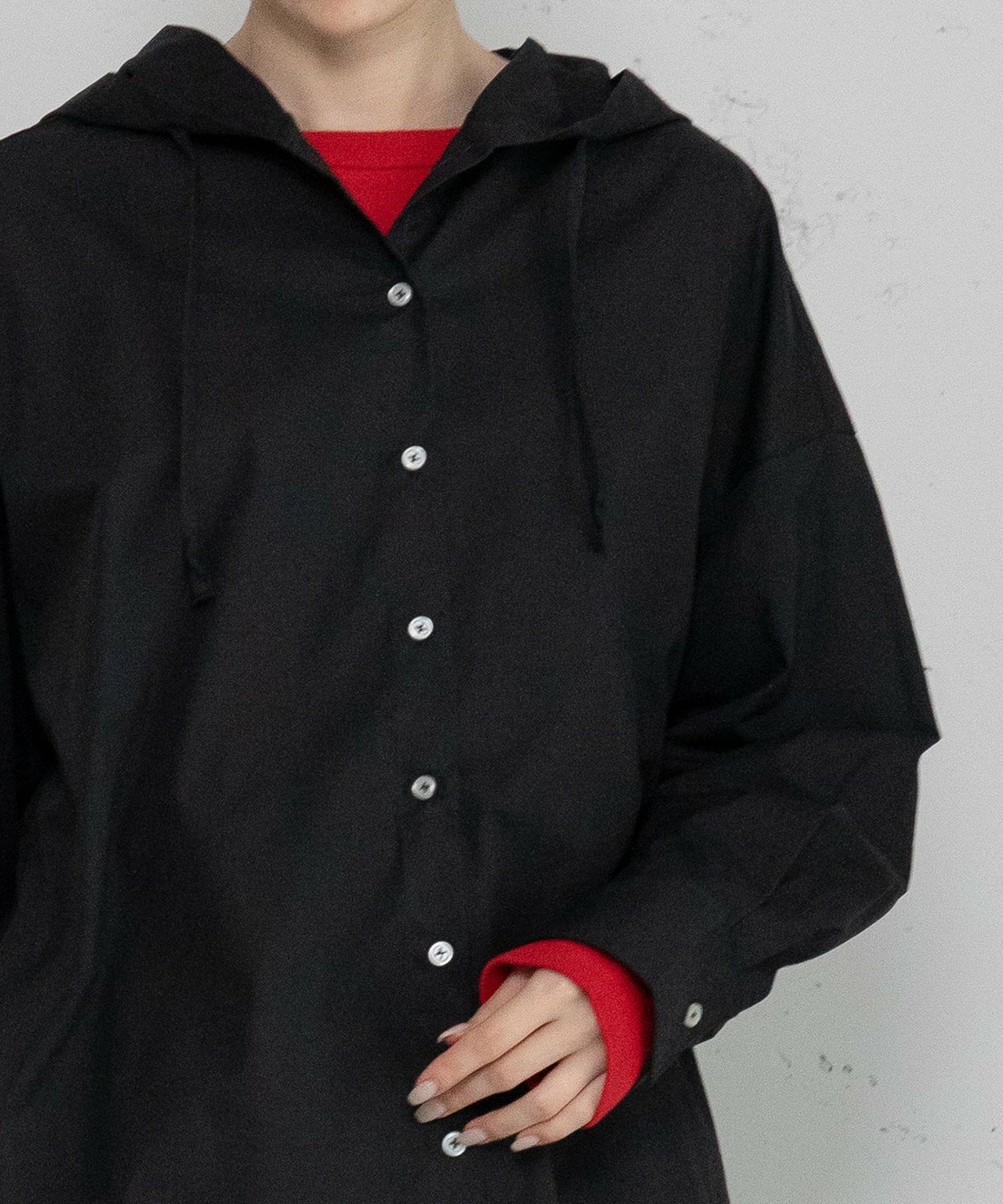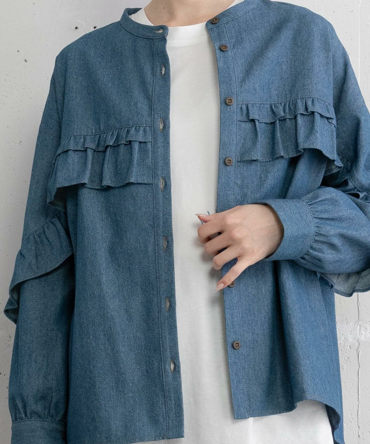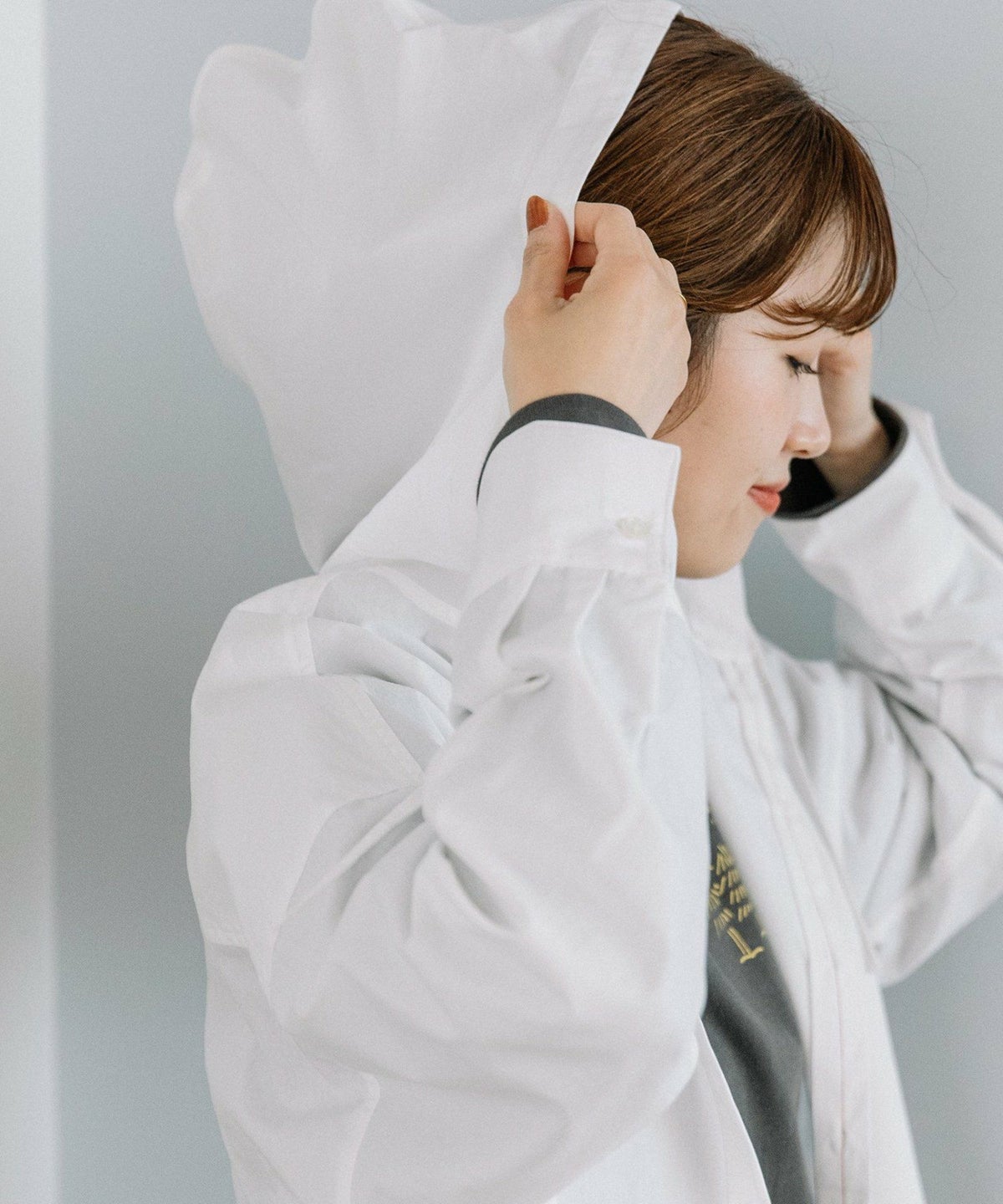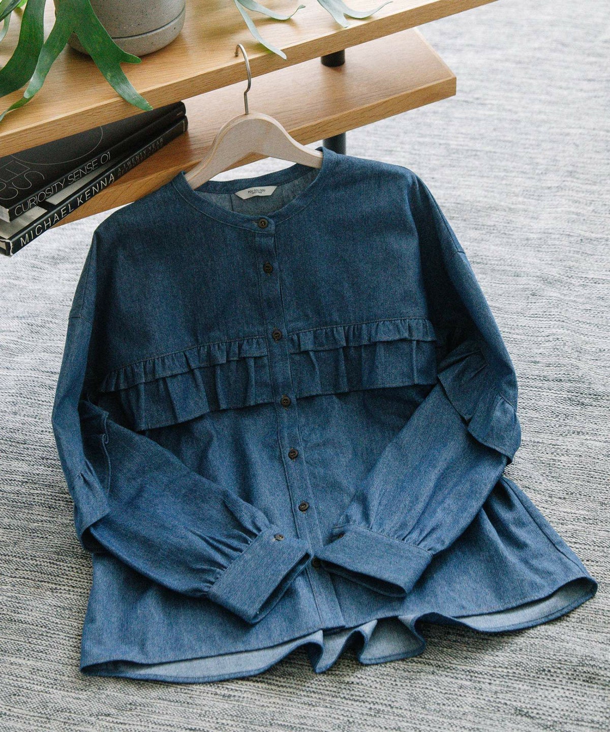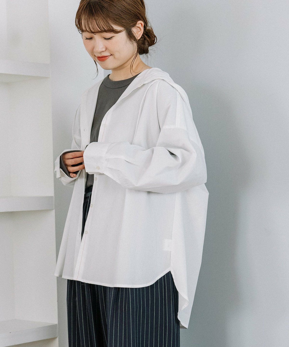 【WINTER SALE】コットンサテンストライプバンドカラーポケットシャツ