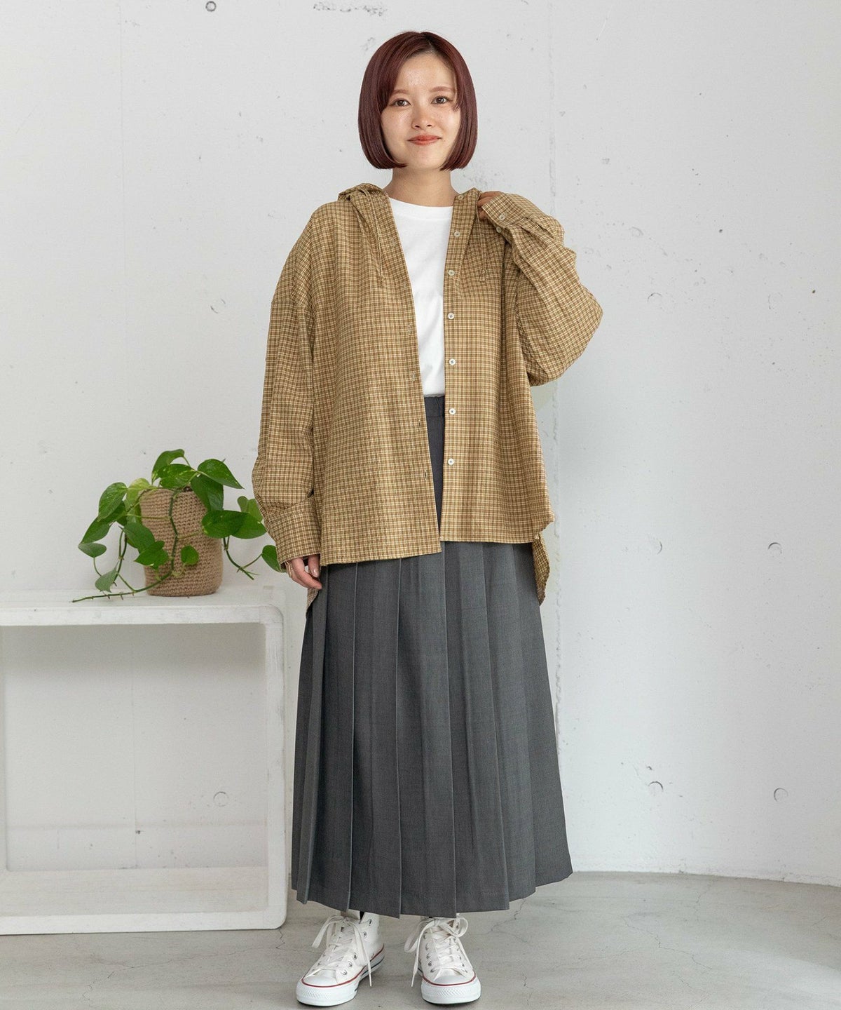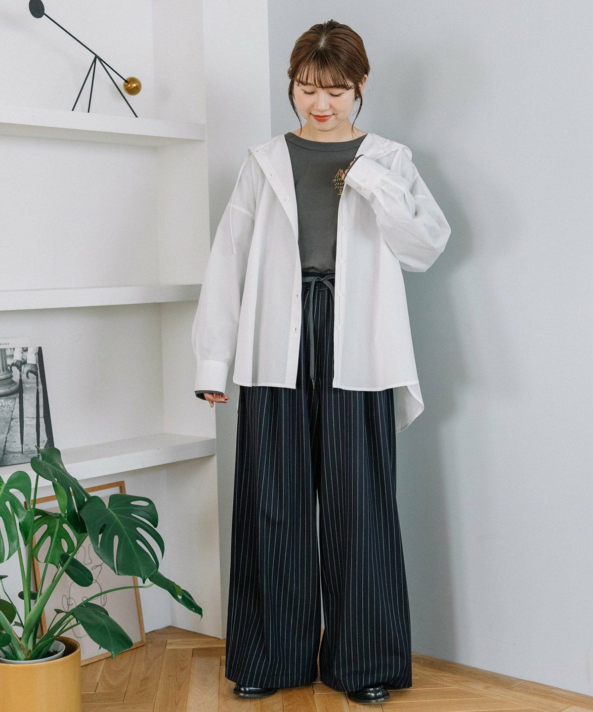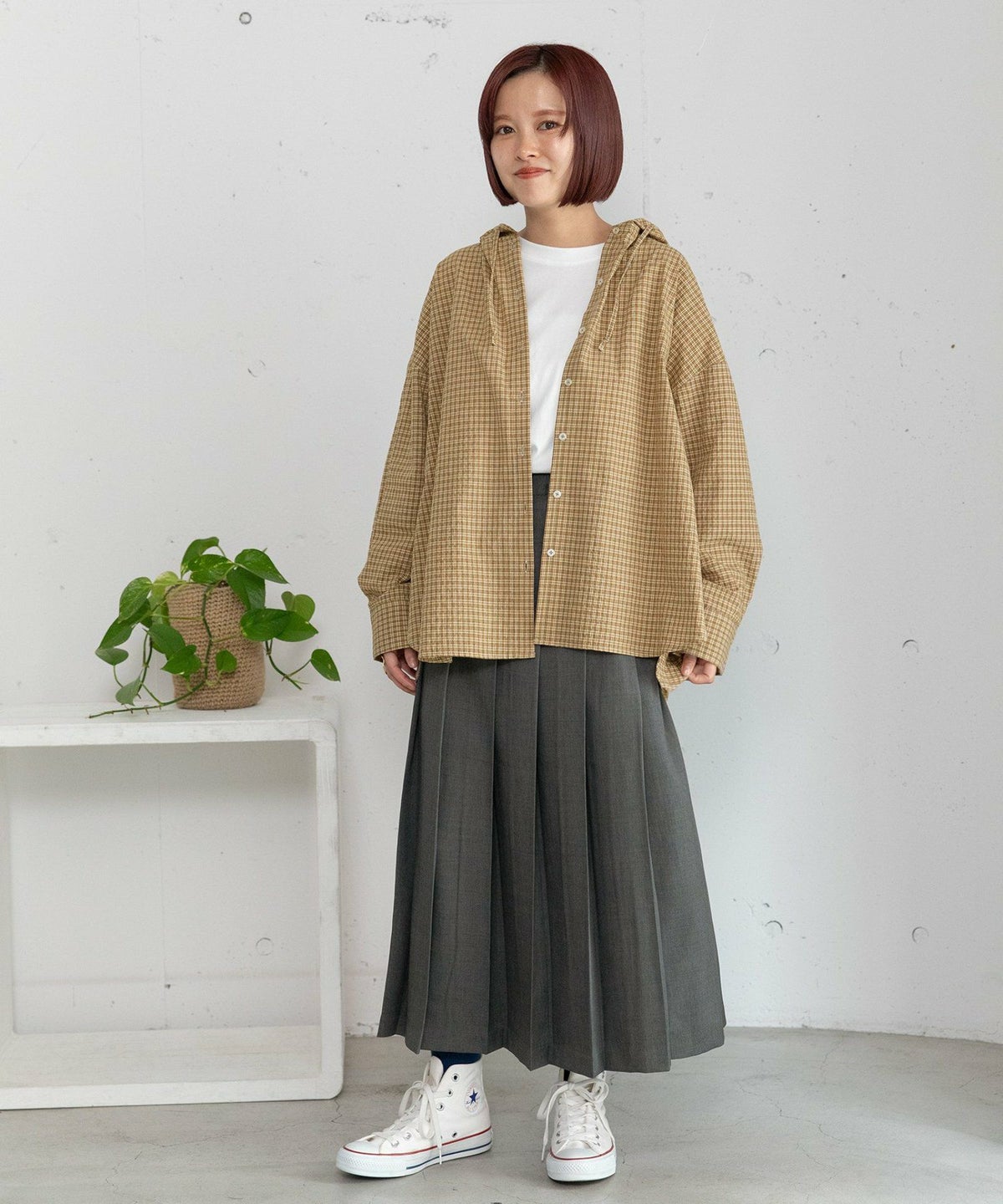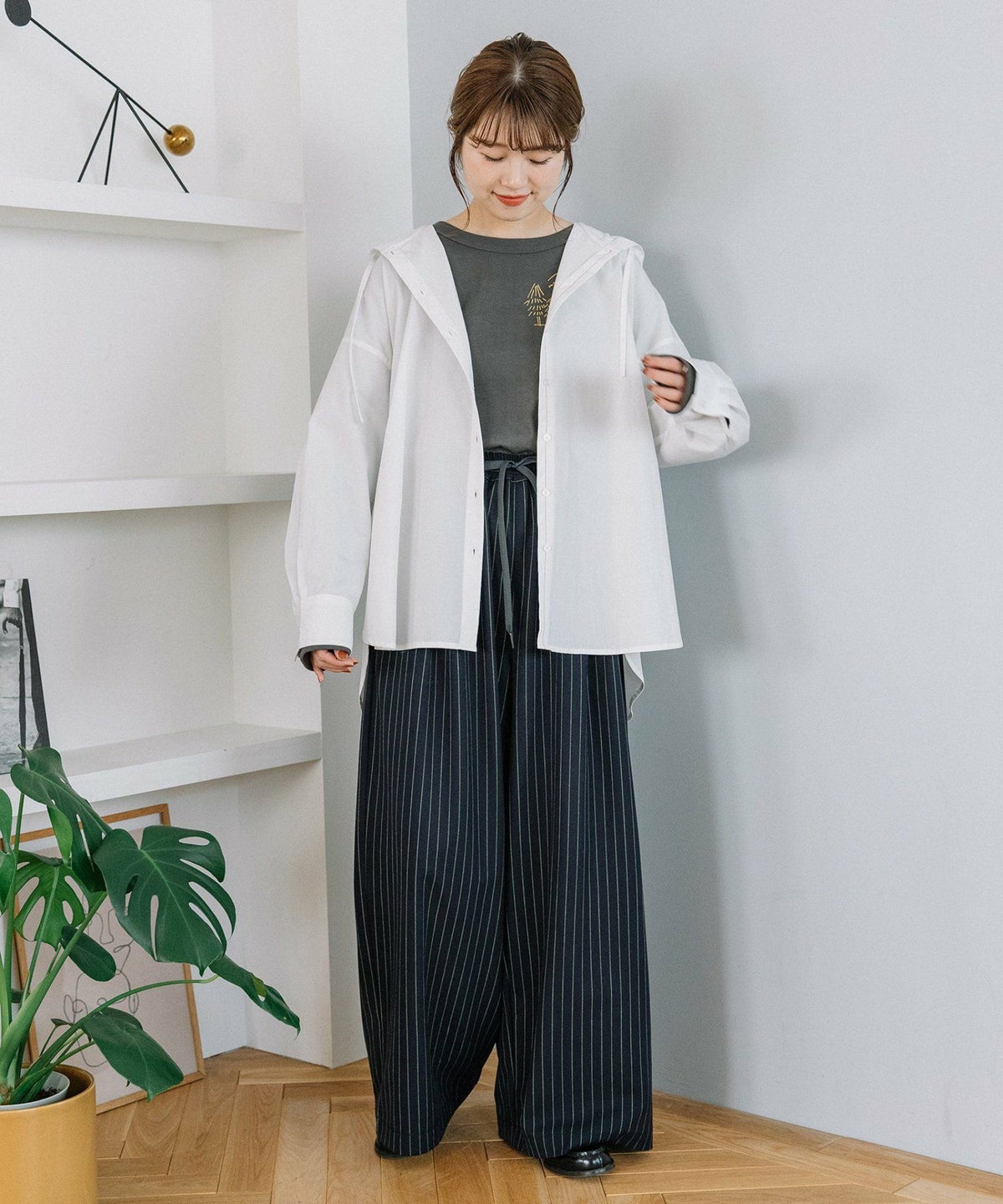 【WINTER SALE】コットンサテンストライプタックキュロットスカート