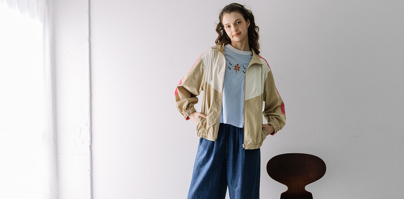 スタンドネック配色切り替えブルゾン
