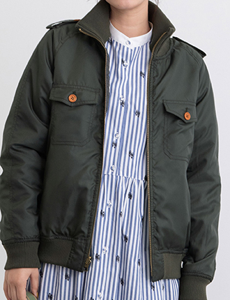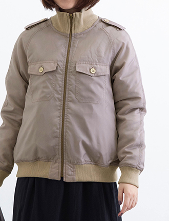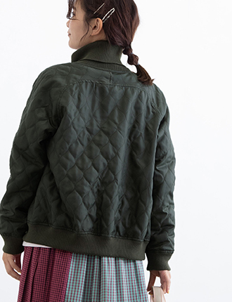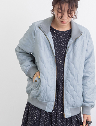 古着を元にしたディティール。滑らかな風合いのマットな生地を使用してカジュアル過ぎない印象です。フロントはジップ開き、首元・袖口・裾には同色系のリブを使っています。胸ポケットが印象的な表側と、キルティングの裏側とどちらもお楽しみ頂けます。