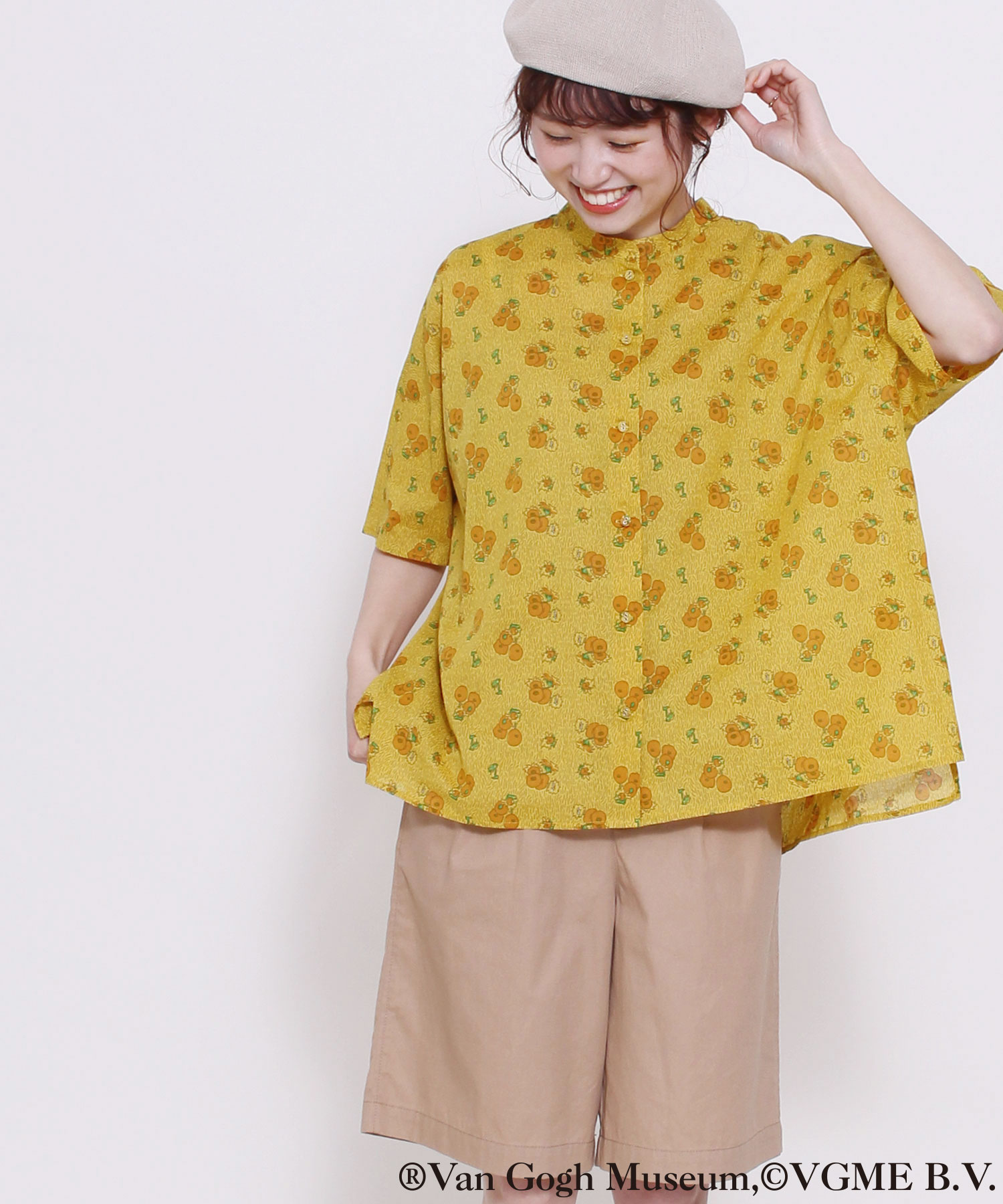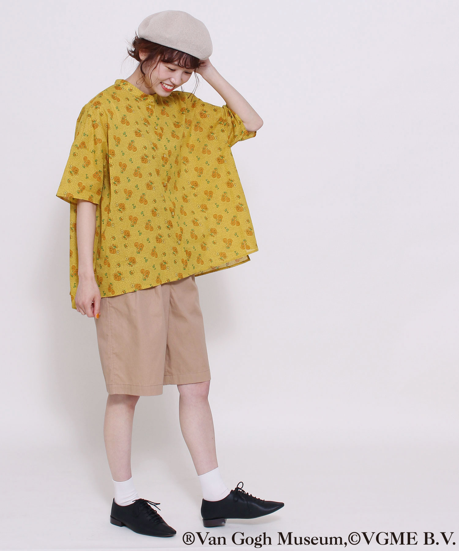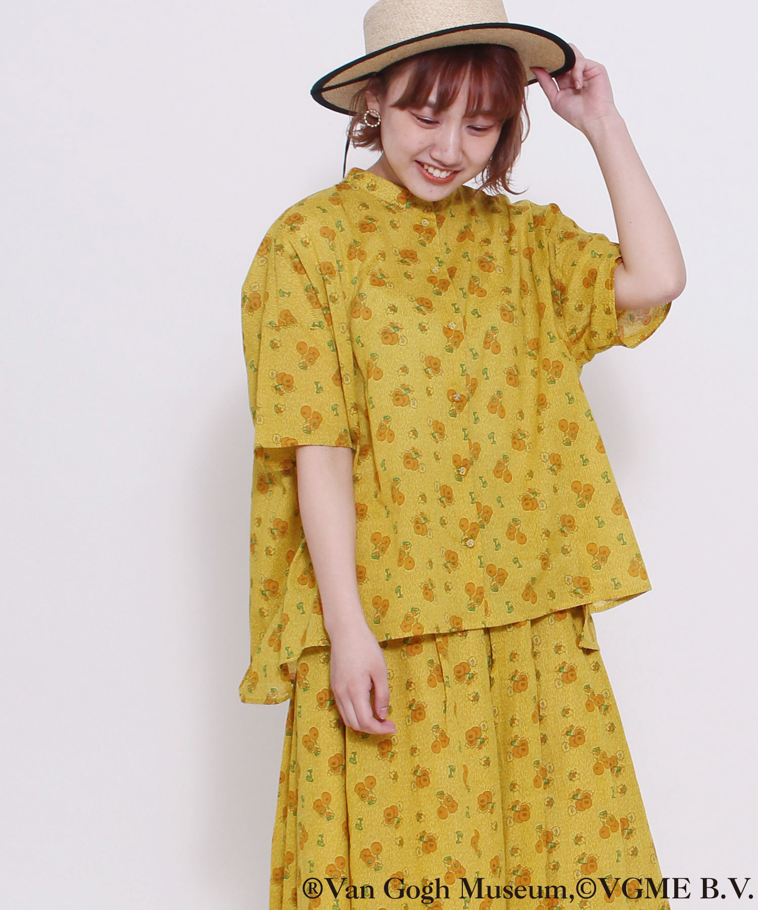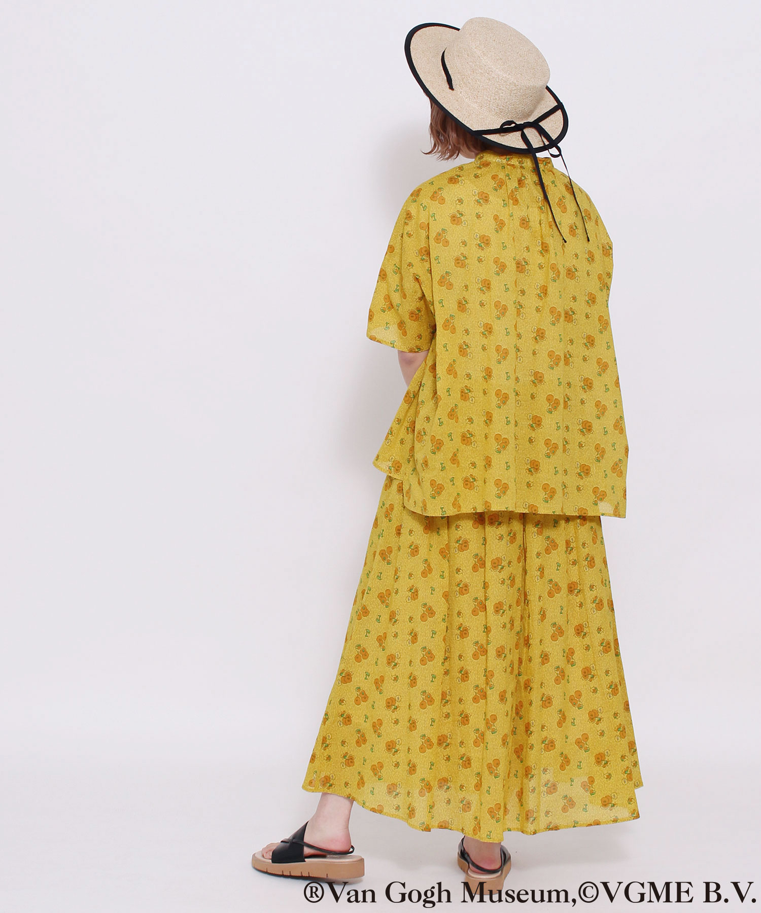 「Sunflowers」から描き起こされた総柄のプリントを軽いコットンローンにプリントしたシリーズ。夏の日差しに映えるひまわりの色味が特別感のあるブラウス。スカートとのセットアップスタイルもおすすめです。
